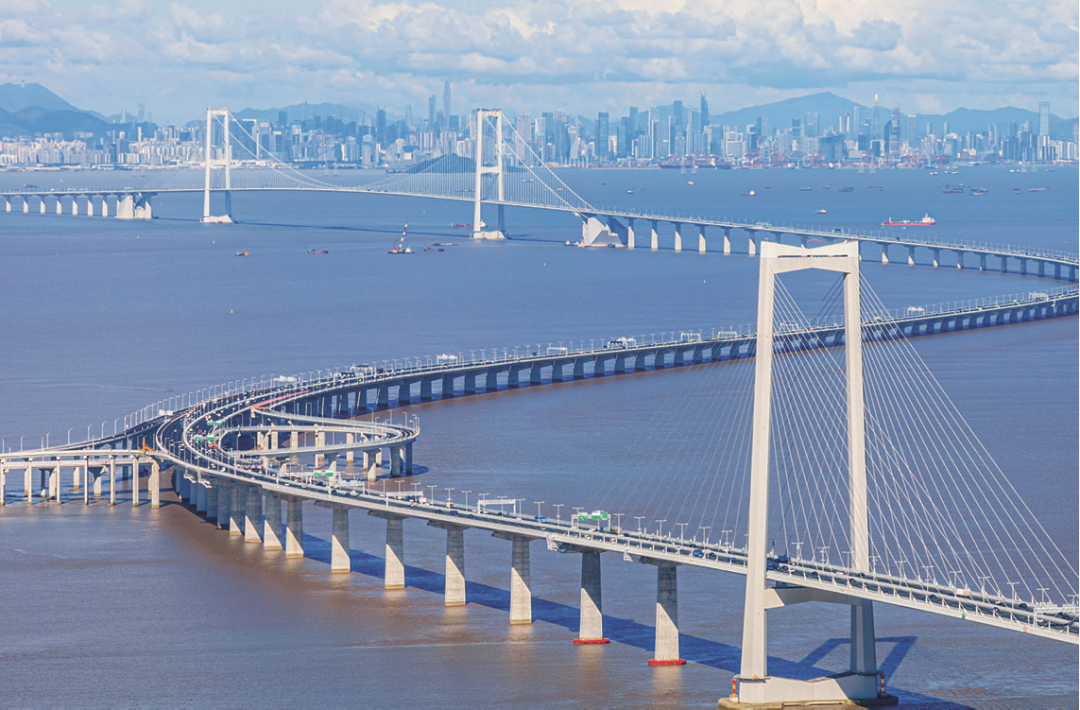 □車輛行駛在深中通道上(2024年7月3日攝,無人機照片 新華社記者 毛思倩/攝)