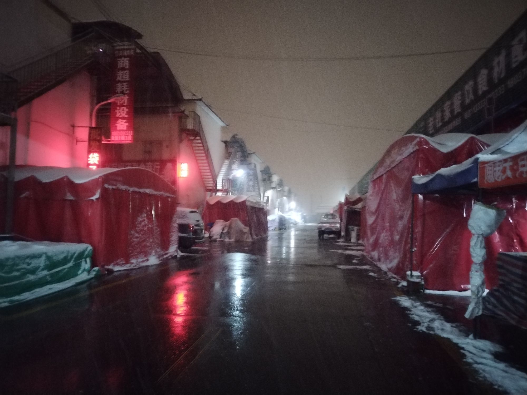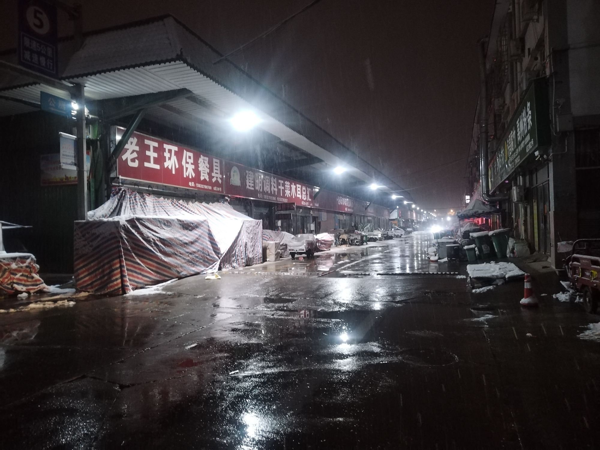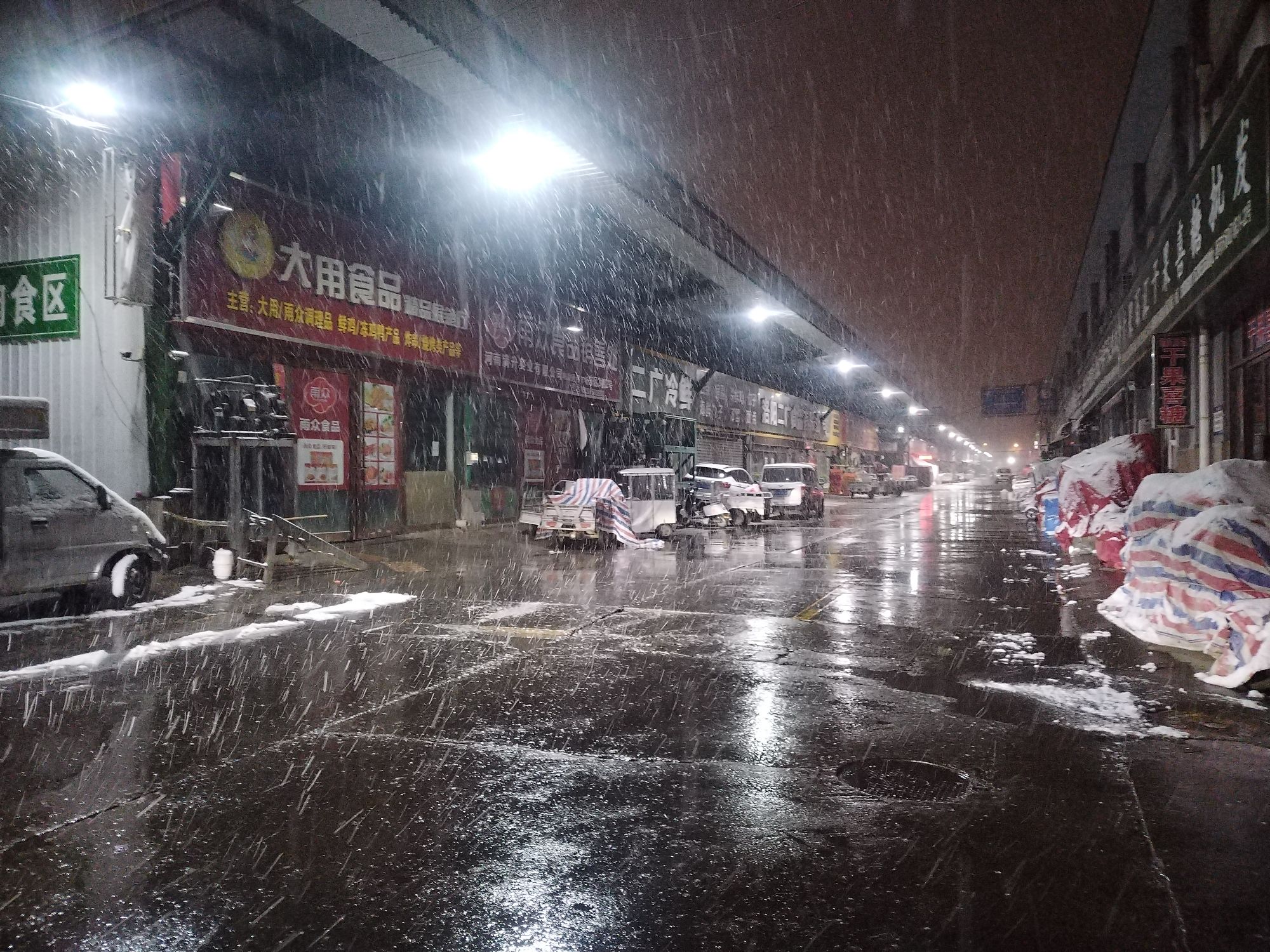 鄉村振興信息網 12月12日夜晚7點半左右,雪還在下著,洛陽通河農貿城主干道上來進貨的車輛還在穿梭。人民攝影網簽約攝影師盧班視點攝影報道