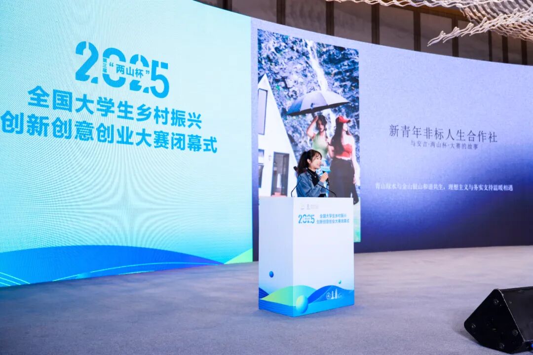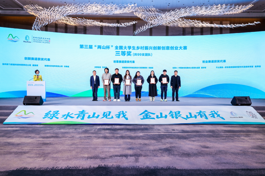 在大賽主題曲《時代青年 筑夢鄉(xiāng)村》的旋律中,2025年第三屆“兩山杯”全國大學(xué)生鄉(xiāng)村振興創(chuàng)新創(chuàng)意創(chuàng)業(yè)大賽圓滿落幕。