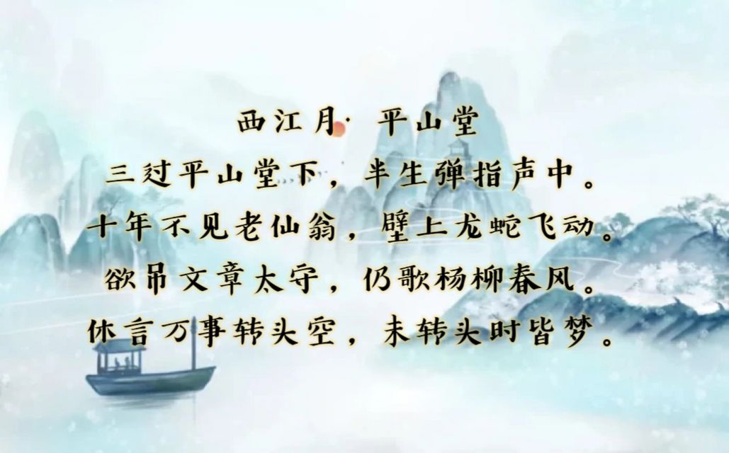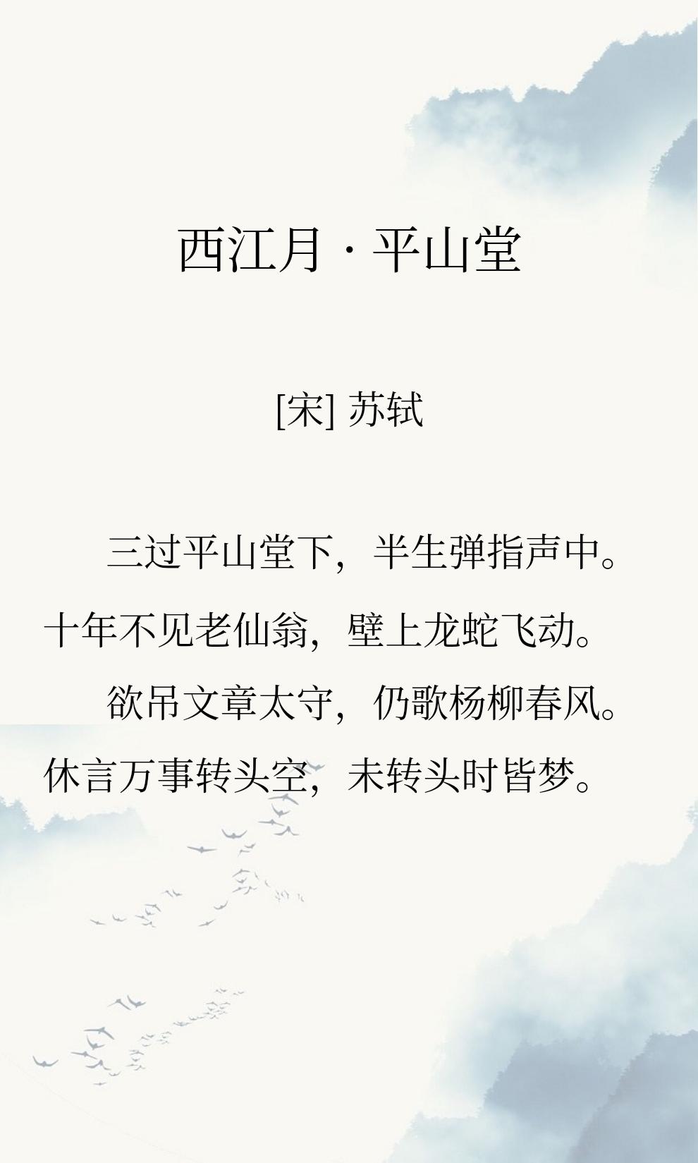 《西江月·平山堂》因而構建了一個完整的精神歷程:上闋的“壁上龍蛇”,是以永恒的藝術與精神,敲醒人們對時間流逝與生命短暫的震撼;下闋的“皆夢”之悟,則是以佛老式的智慧,為這份震撼提供了一種解脫與超越的路徑。從“驚堂木”的巨響,到“清涼雨”的滌蕩,蘇軾完成了一次對恩師的深情告慰,更完成了一次對自我生命的深邃觀照。