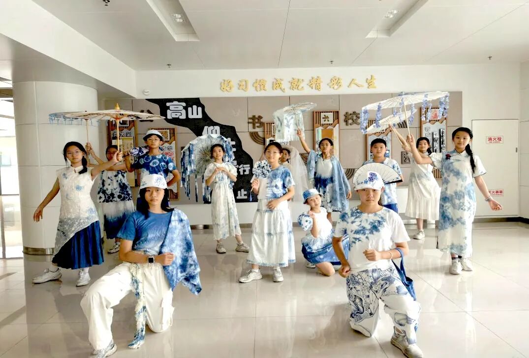 四年前,她接手的班級“形存神散”。她在班級設(shè)立“非遺工坊”,教孩子們捆扎、浸染。協(xié)作的規(guī)則、師徒的幫扶、成功的喜悅,在藍(lán)色的暈染中悄然滋生。課堂的“小工坊”走向了社區(qū)的“大舞臺”。她帶領(lǐng)孩子們舉辦非遺市集,將義賣所得換成上百冊圖書,寄往廣西對口幫扶的學(xué)校。