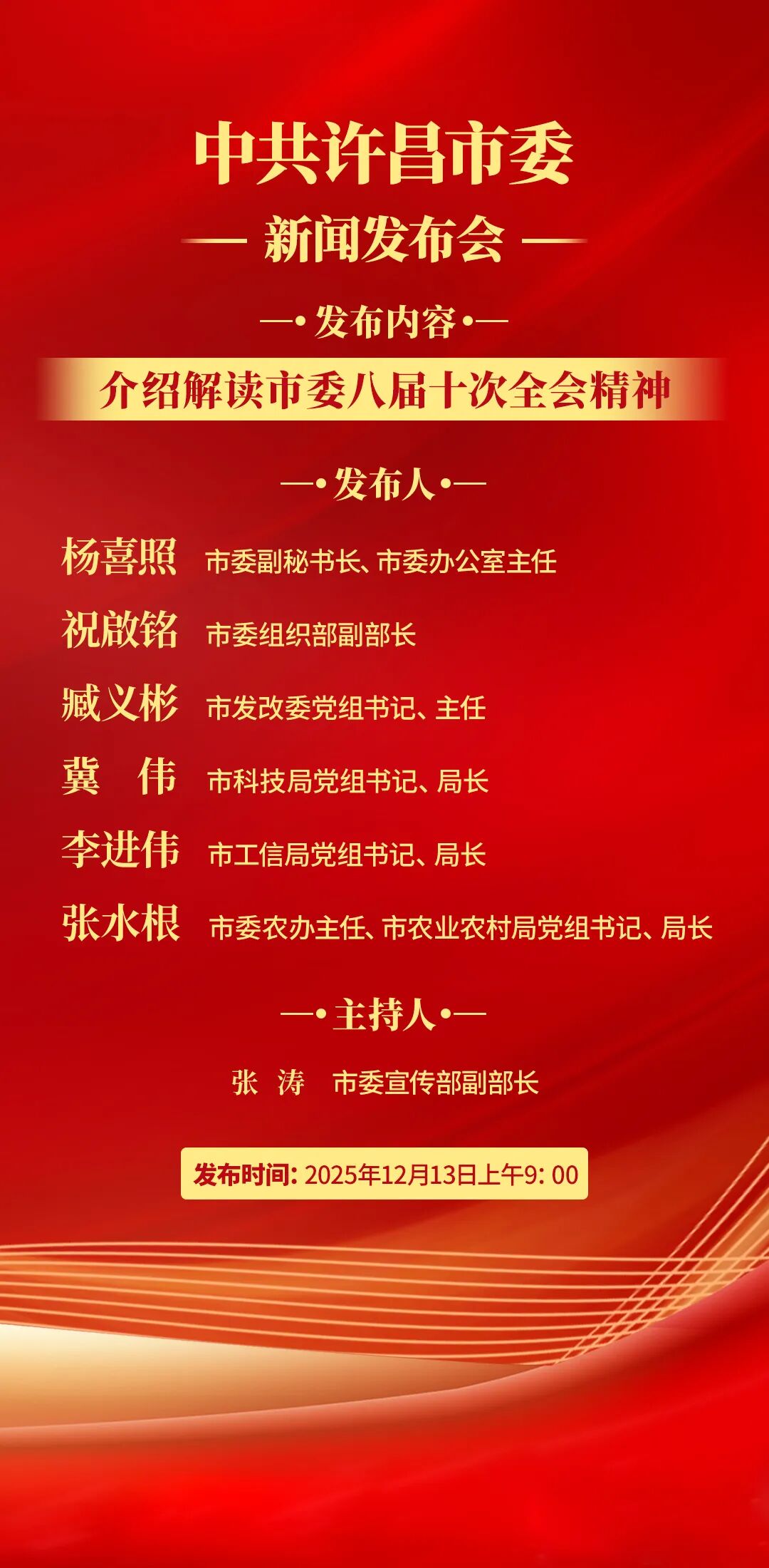 中共許昌市委將于12月13日上午9時舉行新聞發(fā)布會,介紹解讀市委八屆十次全會精神。