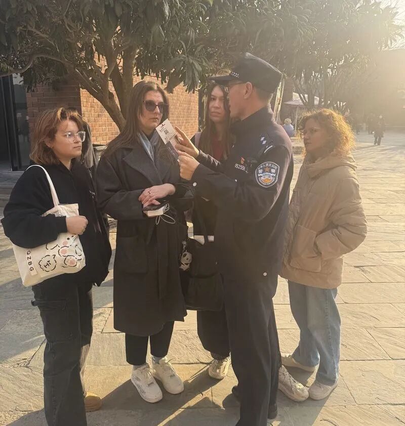 得知這一情況后,被網(wǎng)友稱作“兵馬俑景區(qū)國際范兒警察”民警張藝昱,一邊用英語簡潔明了地介紹麗山園的基本情況,告知其作為秦始皇陵的重要組成部分,有著獨特的歷史文化價值,一邊詳細(xì)告知游客,從當(dāng)前位置步行至景區(qū)專屬擺渡車站點,然后乘坐擺渡車即可直達(dá)麗山園,還特意強調(diào)了擺渡車的發(fā)車時間以及下車后的步行路線。