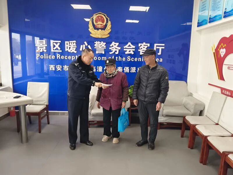 在核實老人身份信息并確認(rèn)無誤后,第一時間為老人及其家人開具了紙質(zhì)版臨時身份證明。考慮到老人年事已高,行動不便,民警主動拿著開好的證明,積極與景區(qū)工作人員溝通協(xié)調(diào),成功為老人辦理了入園手續(xù)。