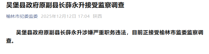 吳堡縣政府原副縣長薛永升涉嫌嚴重職務違法,目前正接受榆林市監(jiān)委監(jiān)察調(diào)查。
