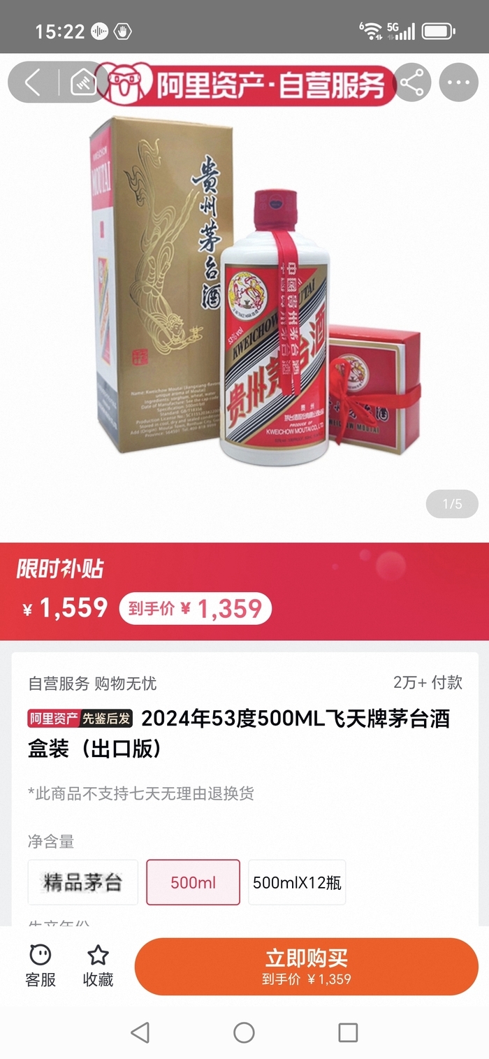 事實上,飛天茅臺的線上平臺售價早已突破指導價。日前,電商平臺拼多多放出“1399元/瓶”的53度500ml飛天茅臺拼團價,直接擊穿1499元的官方指導零售價,引發市場震動。平臺頁面顯示,該價格較此前單獨購買2401元/瓶的價格直降1002元。