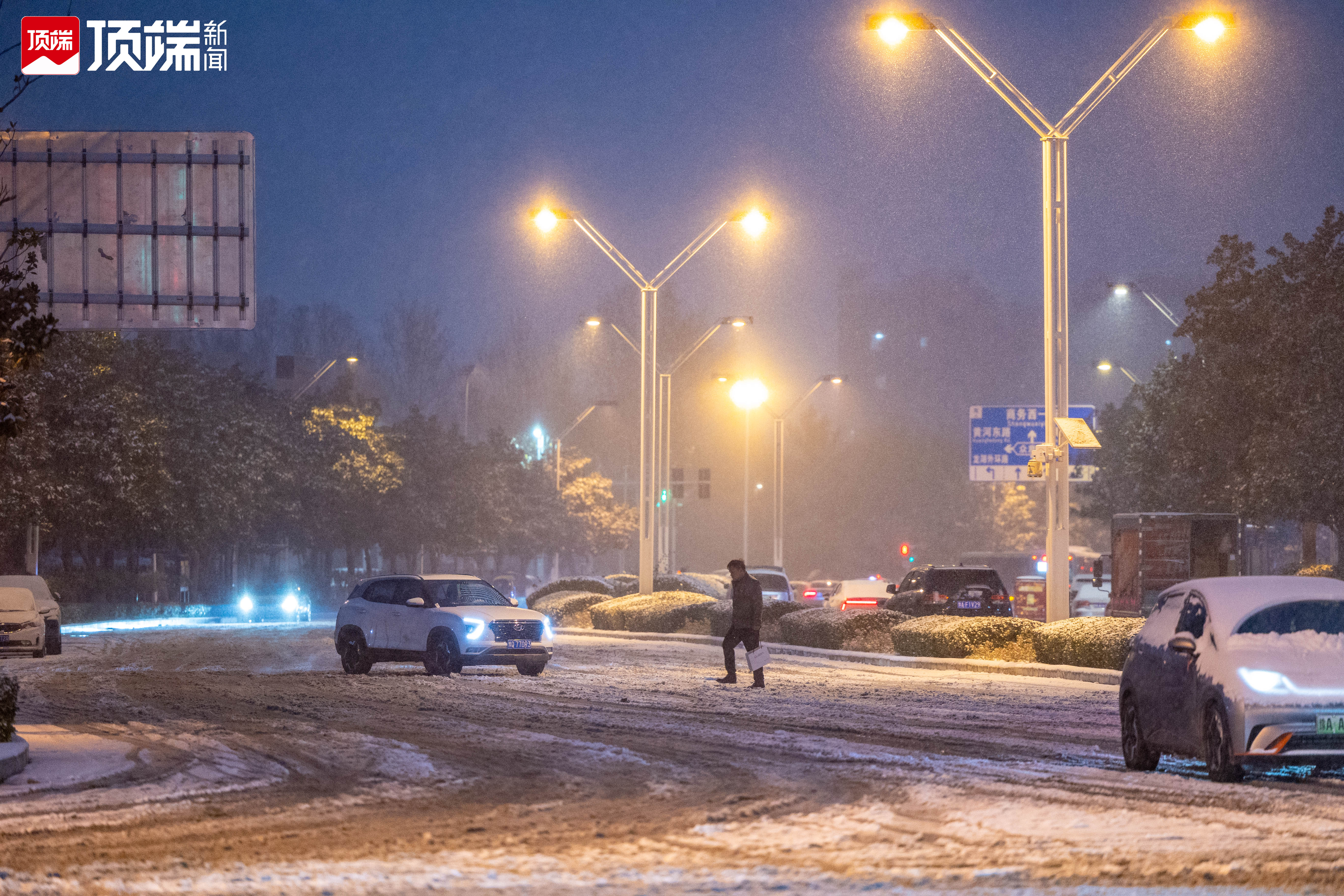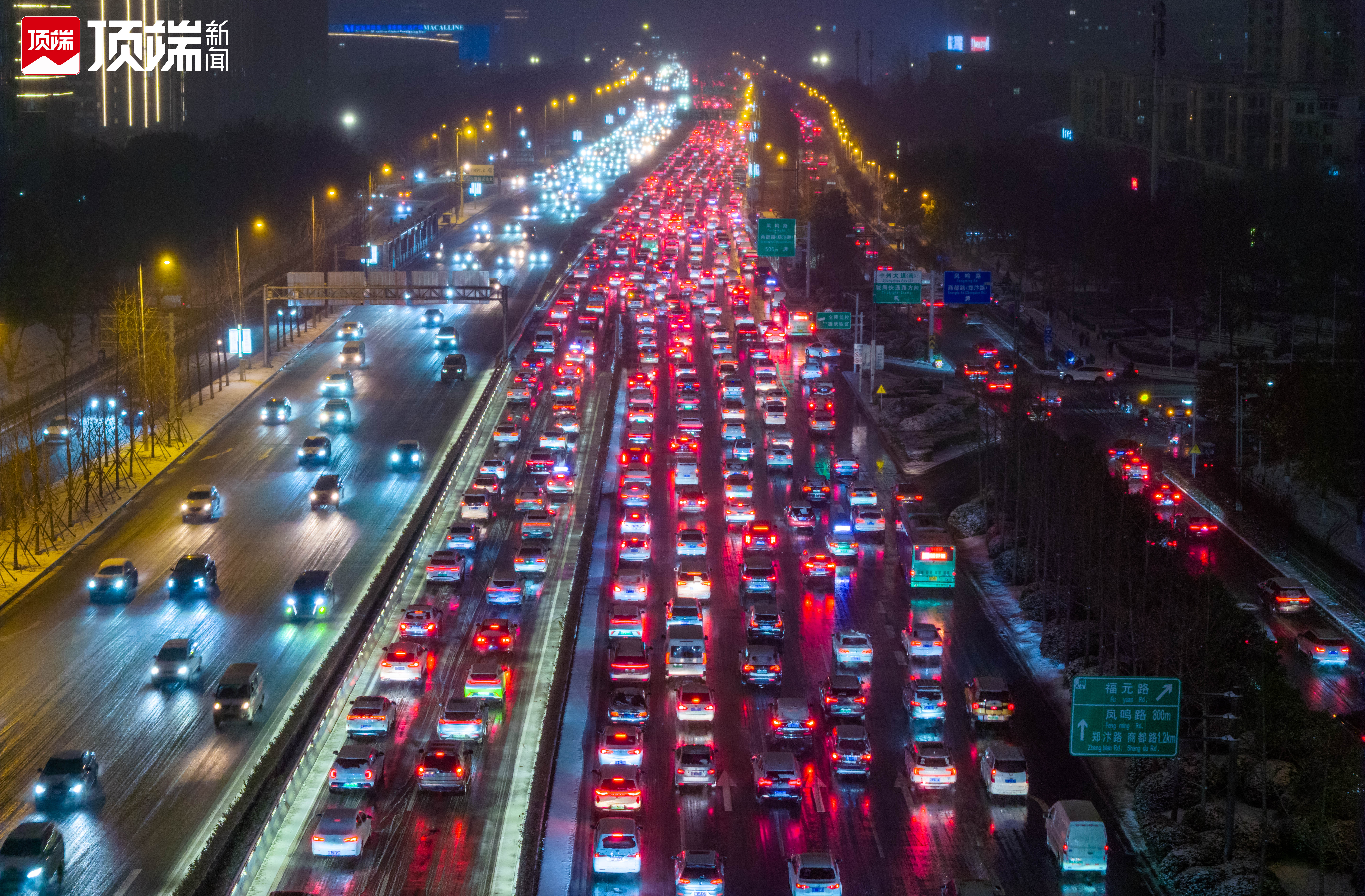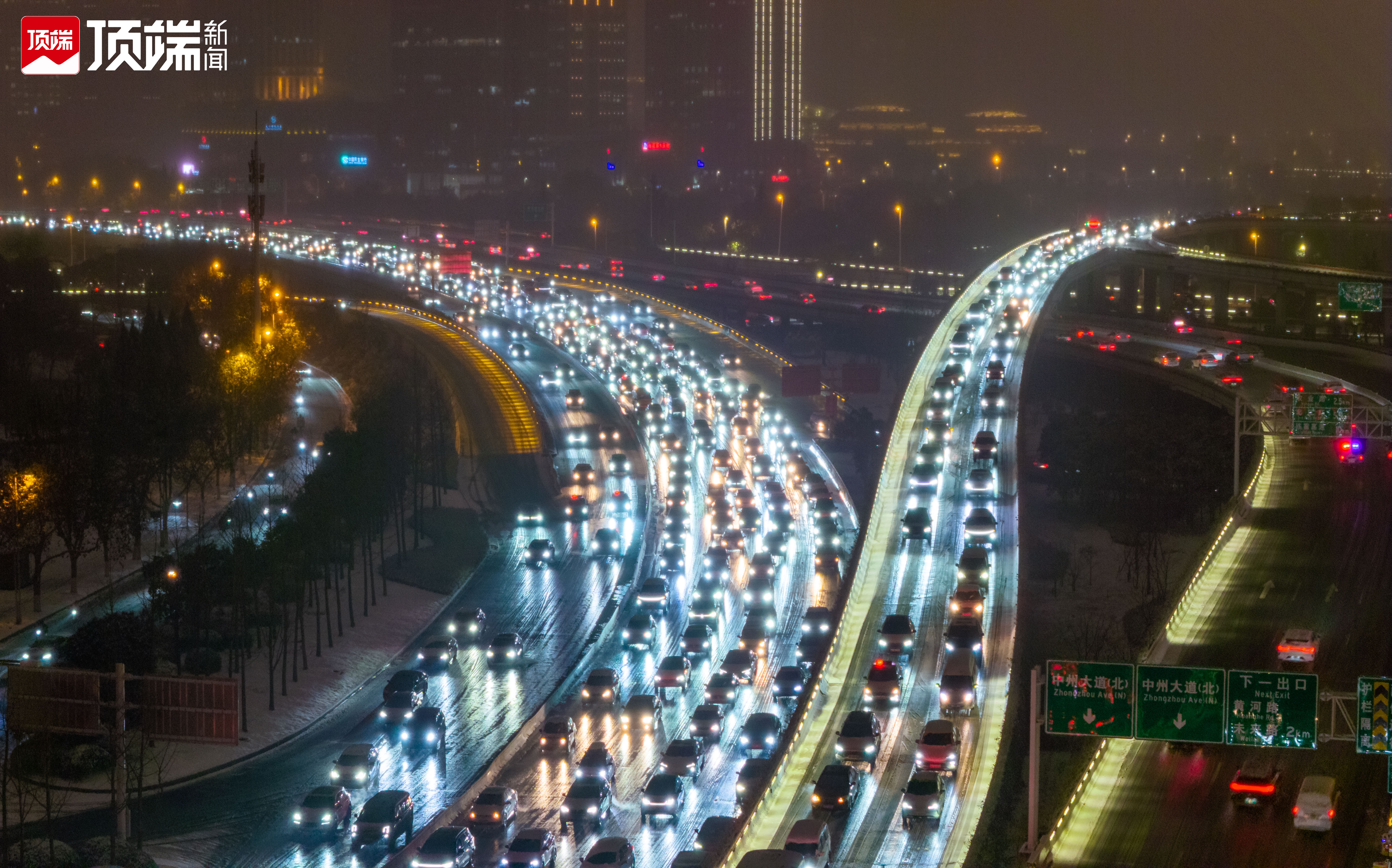 12月12日,鄭州迎來大范圍降雪。晚上7點主城區(qū)道路車輛行駛緩慢,部分路段出現(xiàn)擁堵情況,除了下雪路滑外,周五車流大也是車輛擁堵的原因之一。嚴寒中,車輛在有條不紊地行進。致敬每位奔生活的人,愿所有歸途,終有暖燈相候。