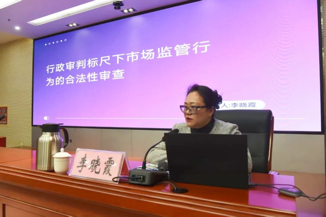 課程緊密圍繞市場監(jiān)管執(zhí)法實際,從行政審判職能切入,詳細闡釋了行政審判對行政執(zhí)法行為的監(jiān)督與規(guī)范作用,引導(dǎo)執(zhí)法人員深刻認識依法行政對維護市場秩序、保障群眾權(quán)益的重要意義。結(jié)合近年來審理的相關(guān)案件,李曉霞系統(tǒng)分析了市場監(jiān)管領(lǐng)域行政案件的類型分布與突出特點,并聚焦食品藥品安全、行政許可與行政登記、市場經(jīng)營秩序等高頻執(zhí)法領(lǐng)域,清晰勾勒出司法審查的標(biāo)準(zhǔn)與尺度。