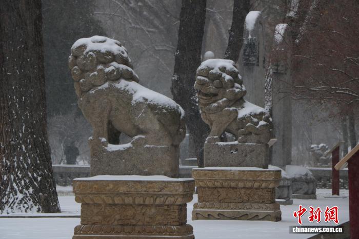 12日,山西迎來2025年首場大范圍降雪,為千年古建晉祠披上一襲銀裝,這座承載著三千年歷史文脈的古建群落,在白雪映襯下煥發出別樣的冬日雅韻。圖為晉祠石獅。丁潔 攝