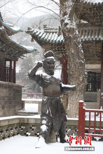 12日,山西迎來2025年首場大范圍降雪,為千年古建晉祠披上一襲銀裝,這座承載著三千年歷史文脈的古建群落,在白雪映襯下煥發出別樣的冬日雅韻。圖為晉祠宋代的鐵人。丁潔 攝