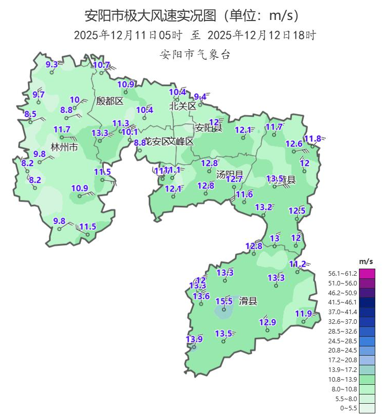 據安陽市氣象局12月12日18時發布的氣象信息快報:
