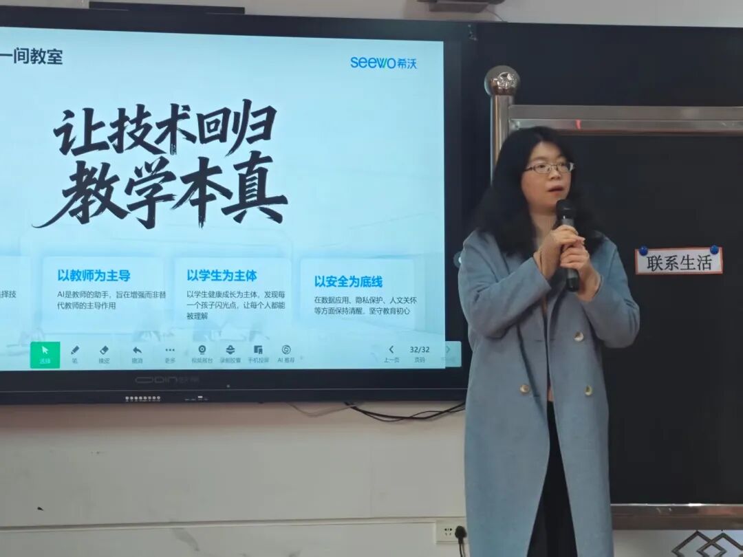 楊超然作總結(jié)講話,她強(qiáng)調(diào)教學(xué)中要理性看待人工智能技術(shù),避免過度依賴,教師的獨(dú)立思考與專業(yè)判斷仍是課堂的核心靈魂。同時對全區(qū)教師提出要求:一是加強(qiáng)AI技術(shù)學(xué)習(xí),提升應(yīng)用能力,將AI工具融入日常教學(xué);二是優(yōu)化教研機(jī)制,形成“技術(shù)賦能、協(xié)同共進(jìn)”的良好生態(tài),讓AI真正成為教學(xué)提質(zhì)的助力。?