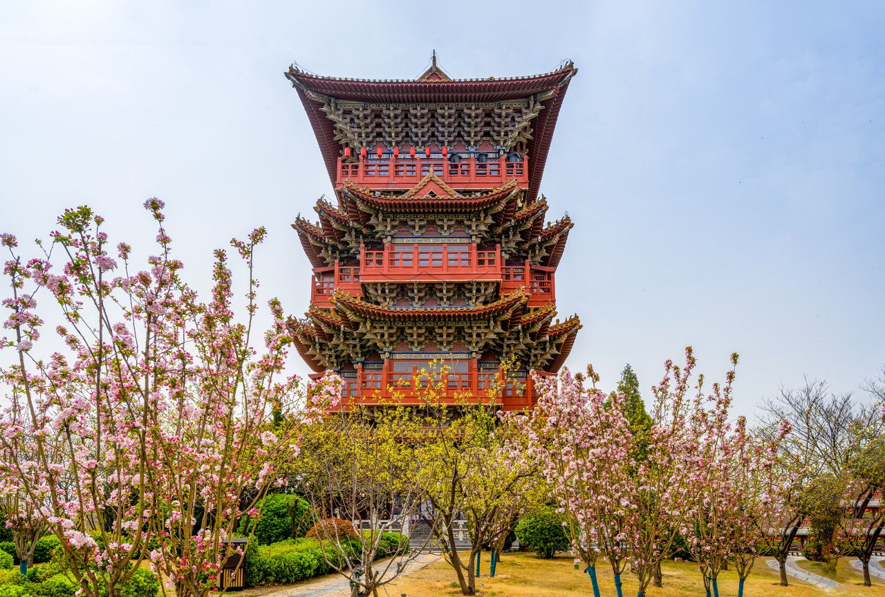 - 拂云閣:為明四暗三結構,是園內最高建筑,取名“拂云”,有觸摸白云和拂去歷史煙云之意,閣外看為四層,內部有造紙館、織錦院等。
