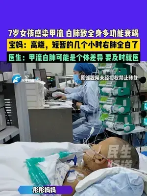12月11日(發布)河南鄭州,7歲女孩感染甲流,白肺致全身多功能衰竭,寶媽:高燒,短暫的幾個小時右肺全白了,醫生:甲流白肺可能是個體差異,要及時就醫(編輯:富貴)#媒體精選計劃