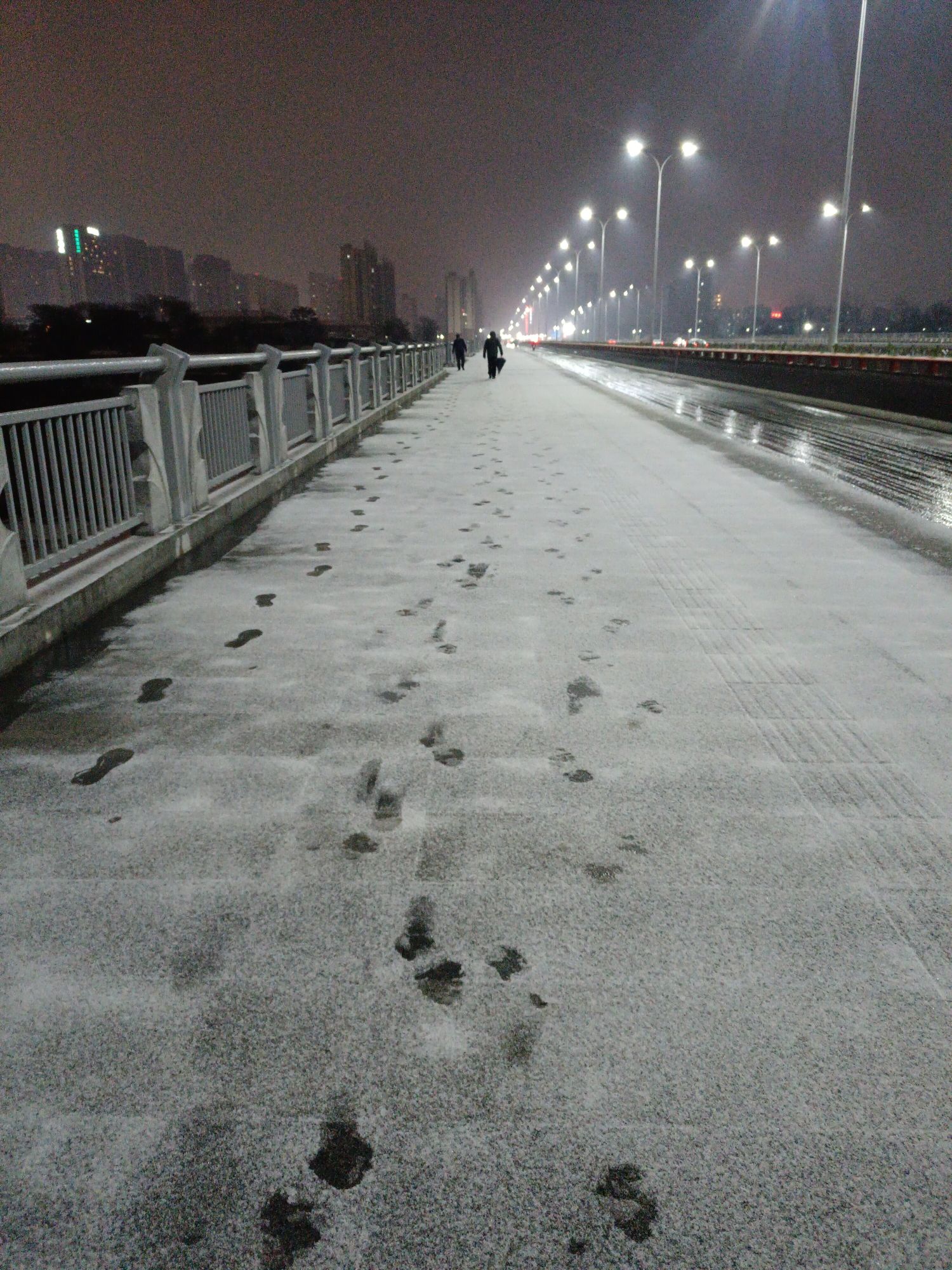 我沿著十一大街慢慢走著,雪越下越大,已經(jīng)能在地面上積起薄薄的一層了。我一手拿著手機,一手甩著。雪花落在我的臉上,涼絲絲的,帶著一絲甜味。
