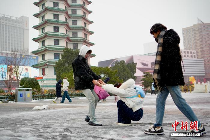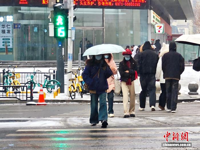 12月12日,河南鄭州迎來降雪天氣。鄭州市氣象臺(tái)當(dāng)日14時(shí)15分發(fā)布暴雪藍(lán)色預(yù)警信號(hào):預(yù)計(jì)今天下午到夜間,鄭州市主城區(qū)、航空港區(qū)、上街區(qū)所轄鄉(xiāng)鎮(zhèn)及街道降雪持續(xù),降雪量將達(dá)4毫米以上。圖為市民雪中出行。記者 范曉恒 攝