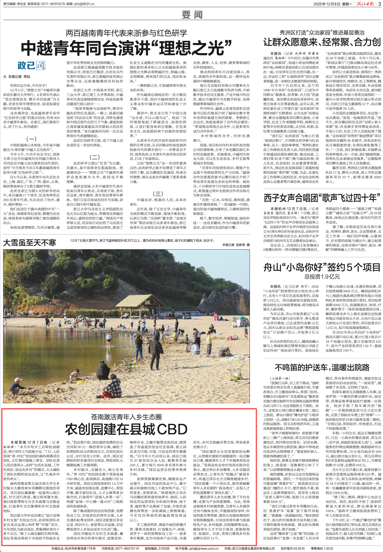“本月中旬開工后將駐場跟進,預計明年3月就能開業(yè)?!?2月7日,入駐蒼南“青·村紀”農創(chuàng)園的森嶼部落項目團隊,正忙著對接施工事宜。團隊負責人范啟望表示,這種“生活在縣城、工作在園區(qū)、創(chuàng)業(yè)在鄉(xiāng)村”的模式,大大減輕了團隊初期的創(chuàng)業(yè)成本,讓“扎根鄉(xiāng)村更有奔頭”。