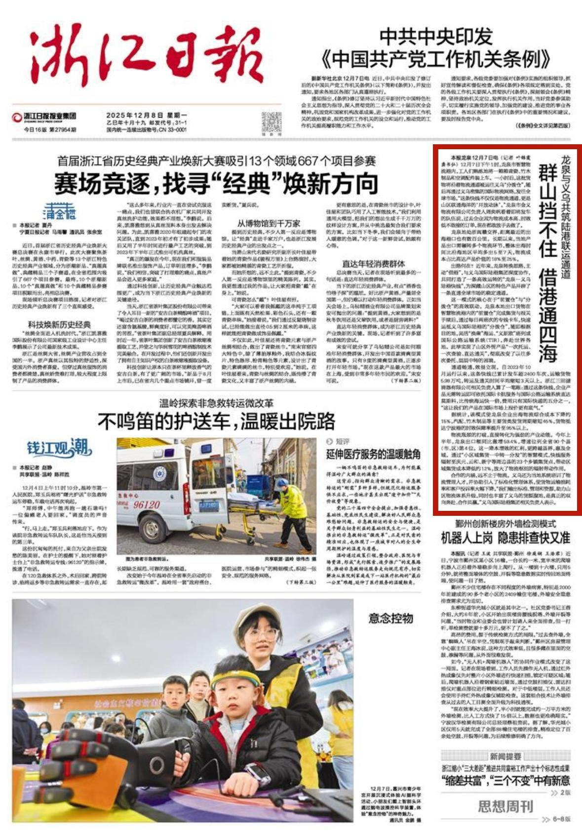 12月8日,浙江日報頭版刊發