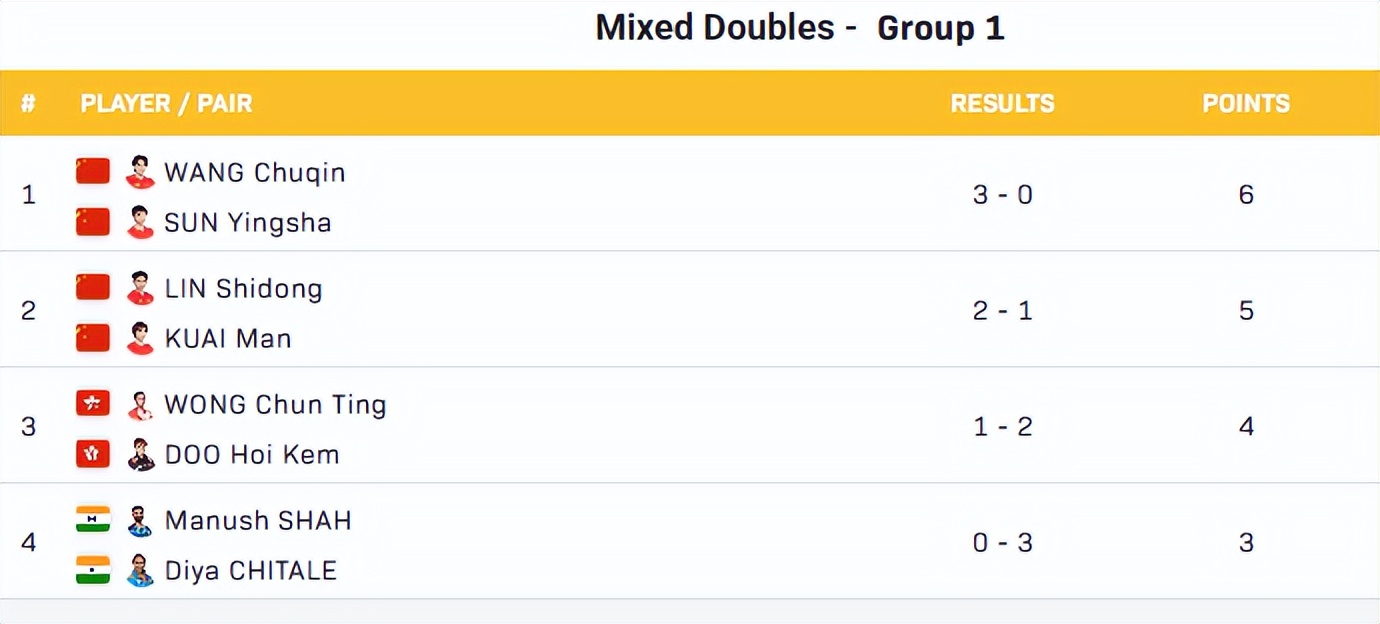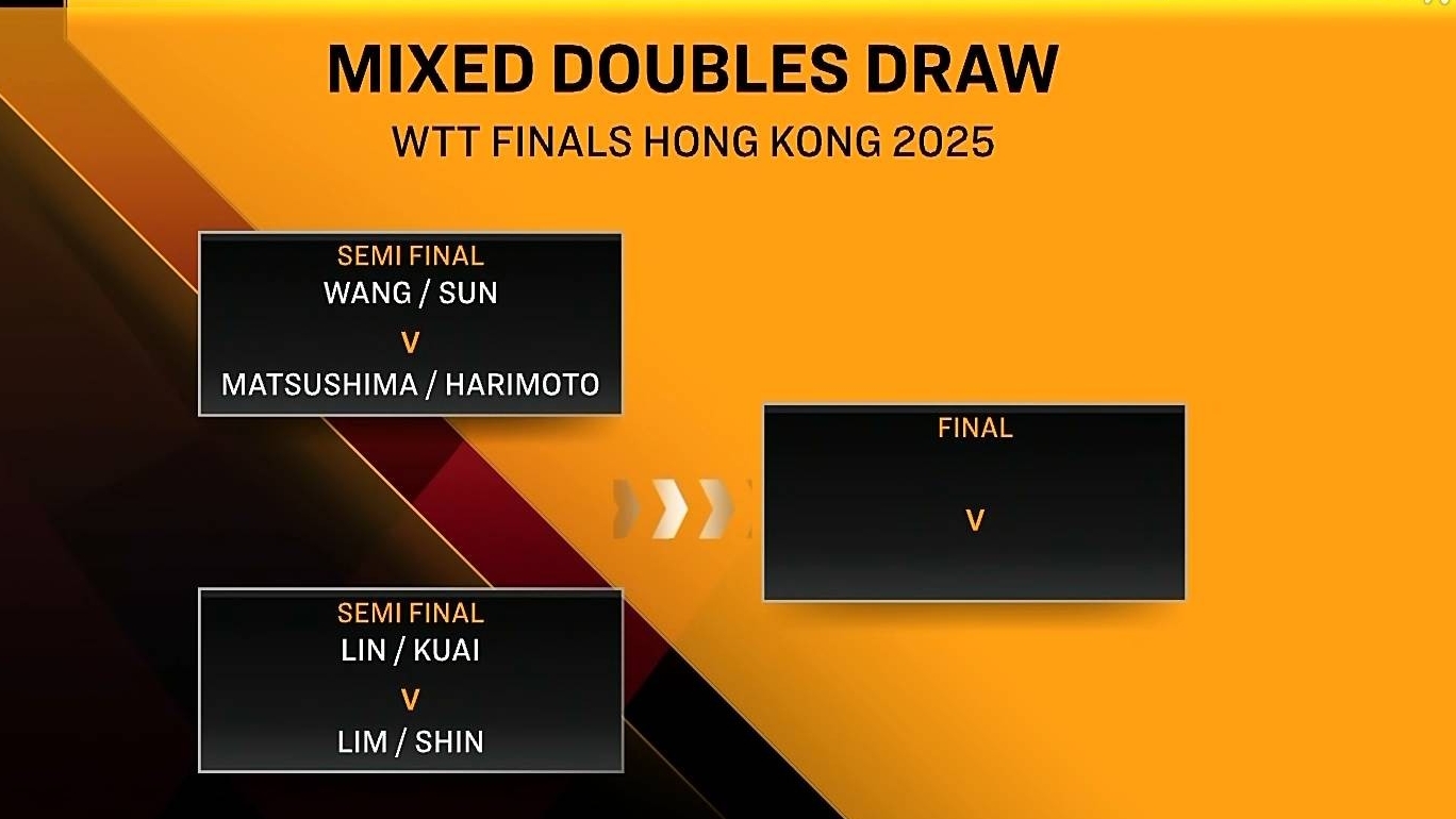 12月12日,WTT總決賽混雙小組循環賽最后一輪。