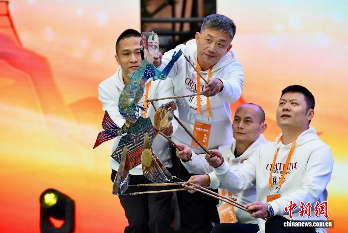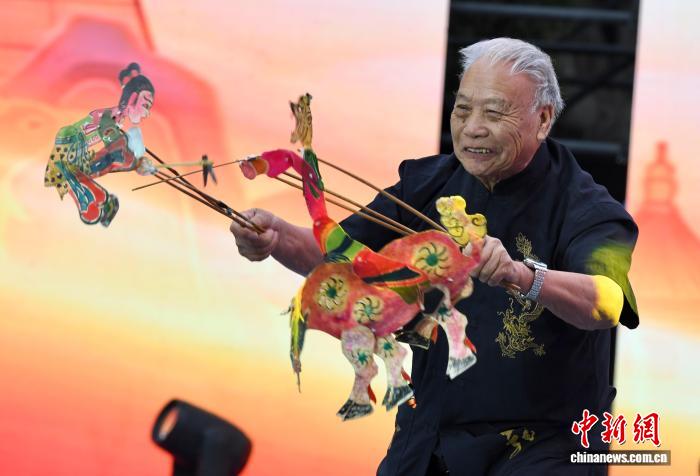 12月12日,泉州國際木偶展演在世界遺產城市、中國知名僑鄉福建泉州啟動。來自世界各地的木偶表演團隊攜手演繹《繽紛偶世界》,展示各具特色的世界木偶藝術風采。圖為老藝術家表演皮影戲。中新社記者 王東明 攝