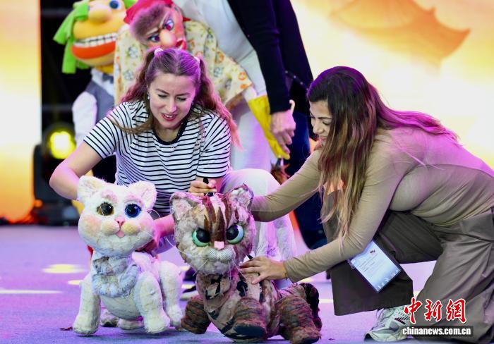 12月12日,泉州國際木偶展演在世界遺產城市、中國知名僑鄉福建泉州啟動。來自世界各地的木偶表演團隊攜手演繹《繽紛偶世界》,展示各具特色的世界木偶藝術風采。圖為國外木偶表演團隊演員上臺精彩演出。中新社記者 王東明 攝