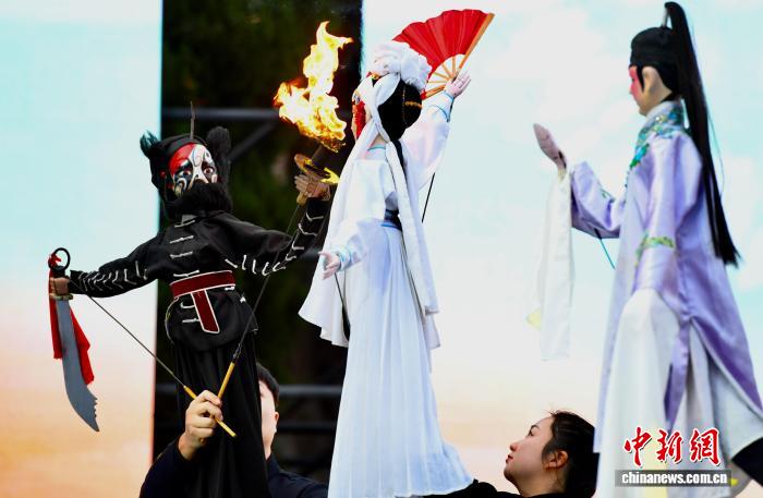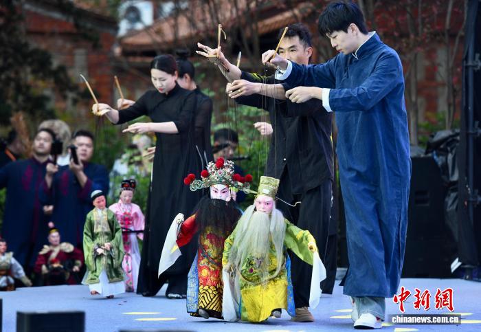 12月12日,泉州國際木偶展演在世界遺產城市、中國知名僑鄉福建泉州啟動。來自世界各地的木偶表演團隊攜手演繹《繽紛偶世界》,展示各具特色的世界木偶藝術風采。圖為國內木偶表演團隊上臺表演提線木偶戲。中新社記者 王東明 攝