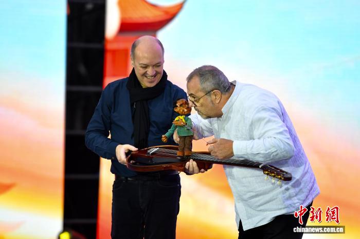 12月12日,泉州國際木偶展演在世界遺產城市、中國知名僑鄉福建泉州啟動。來自世界各地的木偶表演團隊攜手演繹《繽紛偶世界》,展示各具特色的世界木偶藝術風采。圖為國外木偶表演團隊上臺精彩演出。中新社記者 王東明 攝