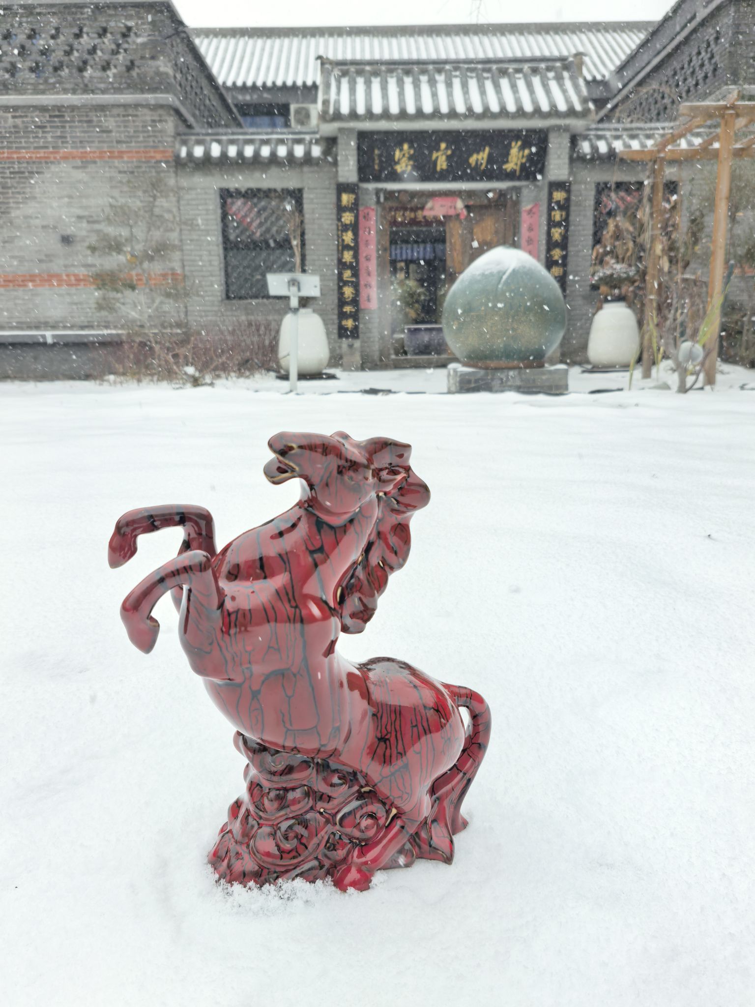 時值歲末,中原大地迎來初雪。紛紛揚揚的雪花中,鄭州官窯的非遺小鎮(zhèn)卻升騰著不滅的窯火——甲午馬年開窯吉時已至,一件名為“馬踏瑞雪”的吉祥禮,正承載著豐年的期盼,踏雪而來。