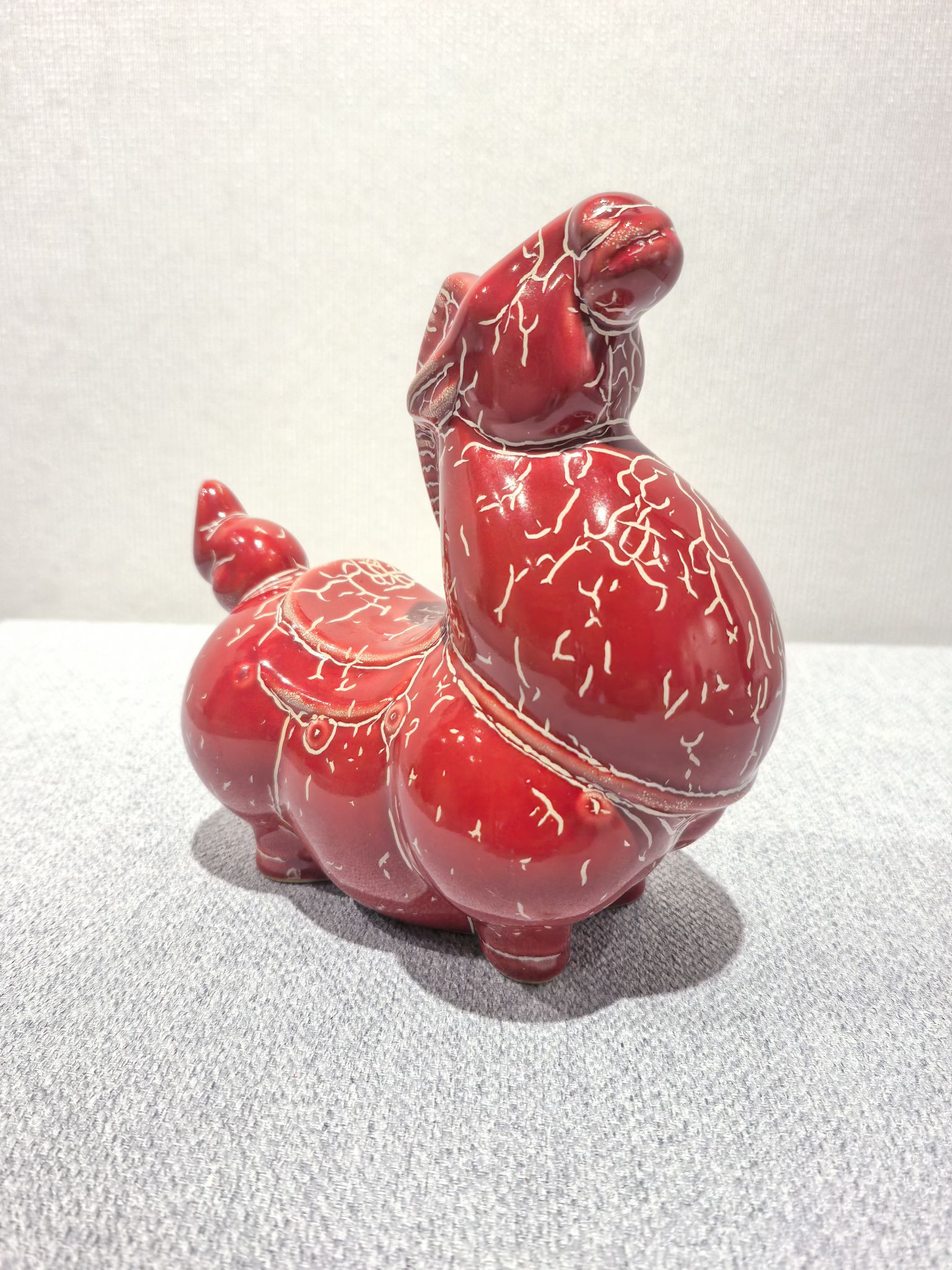 今年開窯的重頭戲,正是這尊“馬踏瑞雪”吉祥禮。作品以駿馬踏雪為意象,馬身挺拔,姿態(tài)昂揚,四蹄之下釉色漸變,由深及淺,恰似踏在積雪之上,又似瑞雪漸融,春意暗藏。