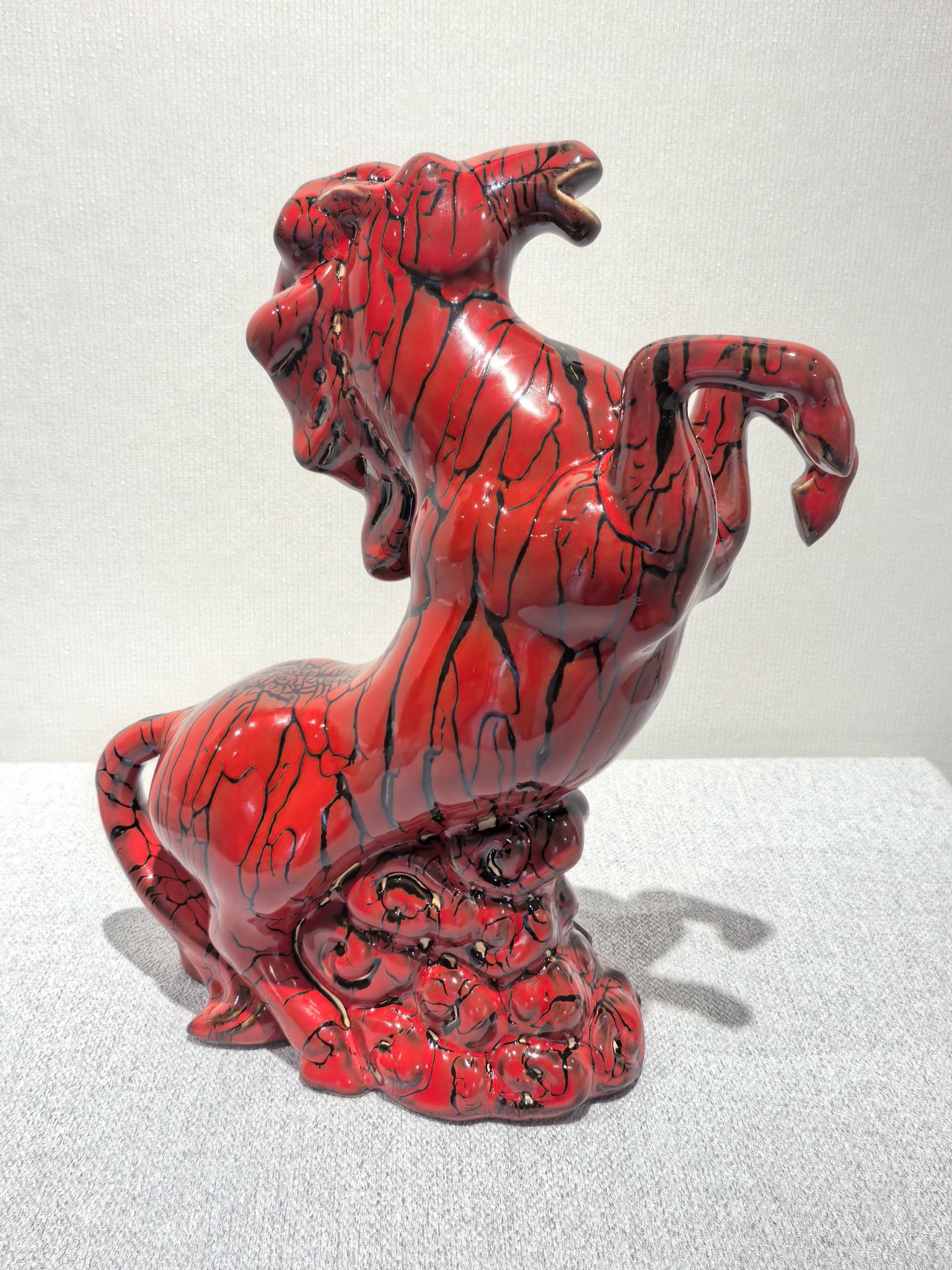 陶瓷裂變釉藝術(shù)館展廳內(nèi),歷年來的生肖吉祥禮依次排列,從龍騰四海到虎嘯山林,從吉羊如意到靈猴獻瑞,每一件都記錄著歲月的流轉(zhuǎn),也見證著傳統(tǒng)工藝在當代的生生不息。