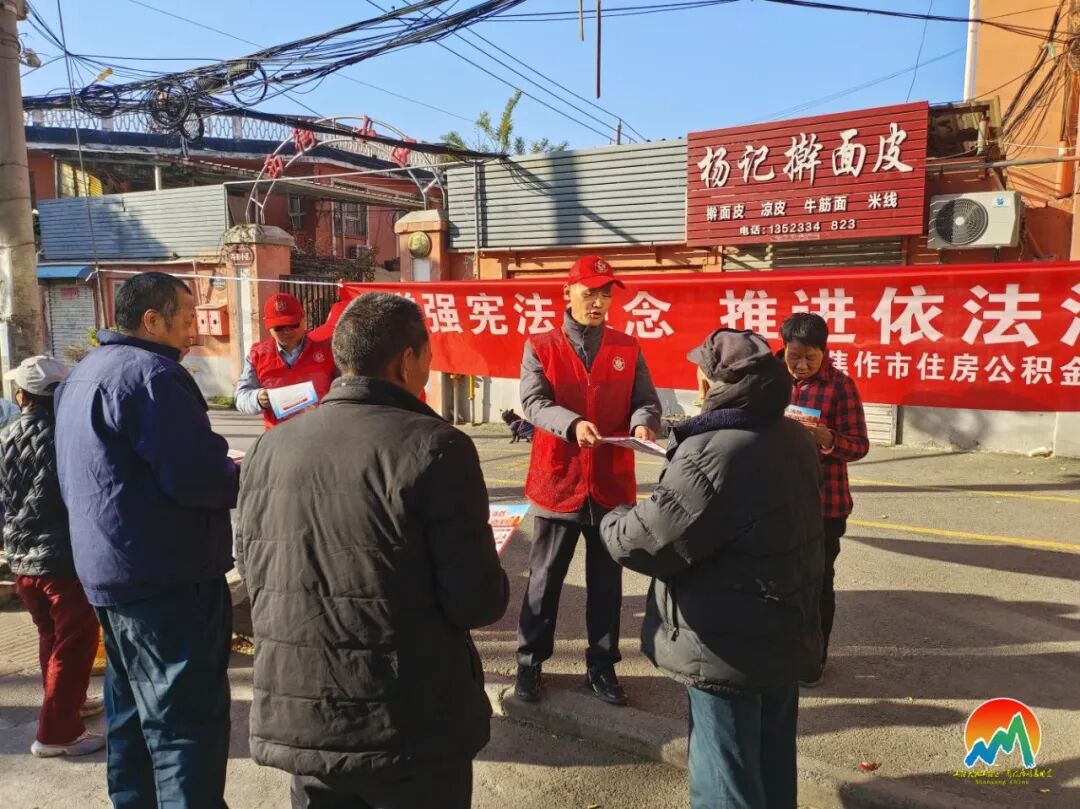 普法宣傳進社區,法治觀念入人心。百間房街道聯合聯建單位焦作市住房公積金管理中心,以“12·4”國家憲法日為契機,開展“普法進社區”主題活動。黨員志愿者搭建宣傳咨詢臺,通過拉橫幅、現場解讀等形式,向居民普及《民法典》核心內容,發放宣傳資料800余份,讓法律知識走進千家萬戶。同步開展住房公積金政策宣講,黨員骨干現場解答繳存、提取等咨詢20余件,發放《住房公積金管理條例》手冊50余份,以“黨建+聯建”模式打通普法惠民“最后一公里”,贏得居民廣泛好評。