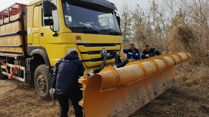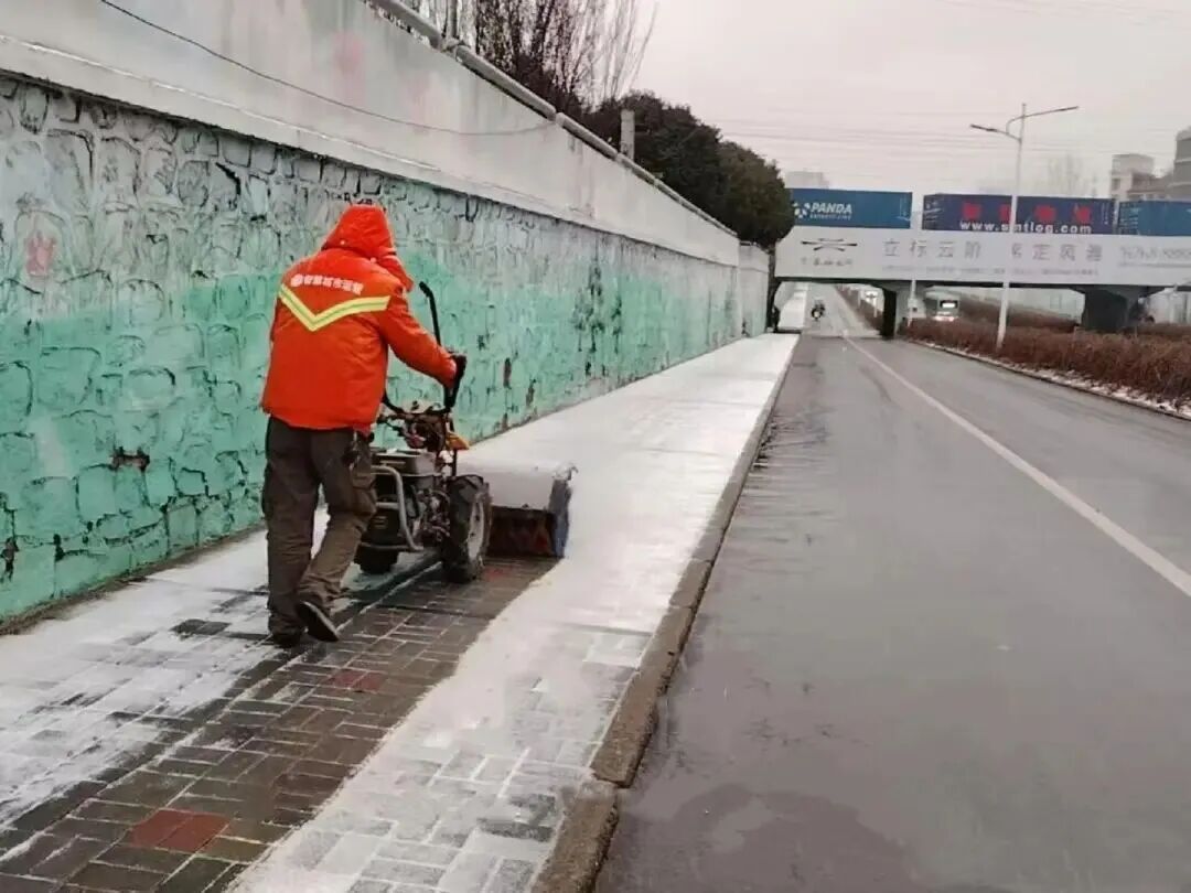 備足物資,筑牢除雪“保障墻”。為確保應(yīng)急除雪物資“拿得出、用得上”,高新區(qū)提前啟動(dòng)物資儲(chǔ)備工作,在轄區(qū)多個(gè)物資儲(chǔ)備點(diǎn)集中存放融雪劑、手推除雪滾、人工推雪鏟等應(yīng)急物資,并對(duì)各類除雪設(shè)備進(jìn)行全面檢修和保養(yǎng)。目前配備大型除雪車(chē)46輛(配套除雪滾刷42臺(tái)、配套除雪鏟4臺(tái))、撒布機(jī)7臺(tái)(2大5小)、手推除雪滾54臺(tái)、融雪劑646.74噸、人工推雪鏟1600把、鐵鍬1400把,組建了5支除雪應(yīng)急突擊隊(duì)伍共150人。?
