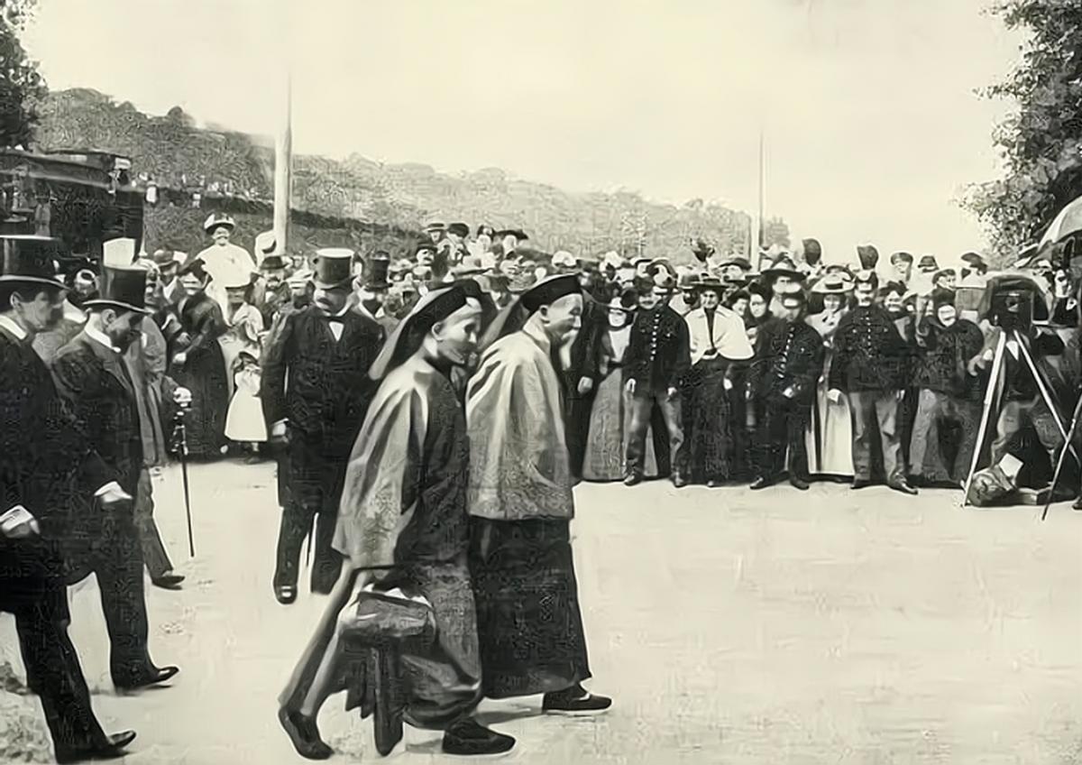 這是李鴻章當年出訪美國的照片,周圍的外國人就像看天外來客一般看著他們。