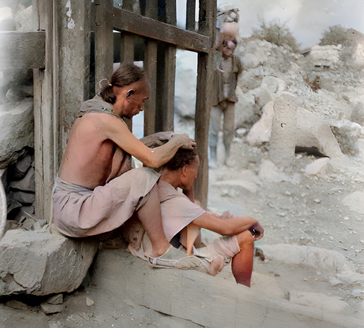 清朝時期,衛生條件很差,大家又不經常洗頭,頭上就會長虱子,所以總是會看到有人坐到一起互相捉虱子。