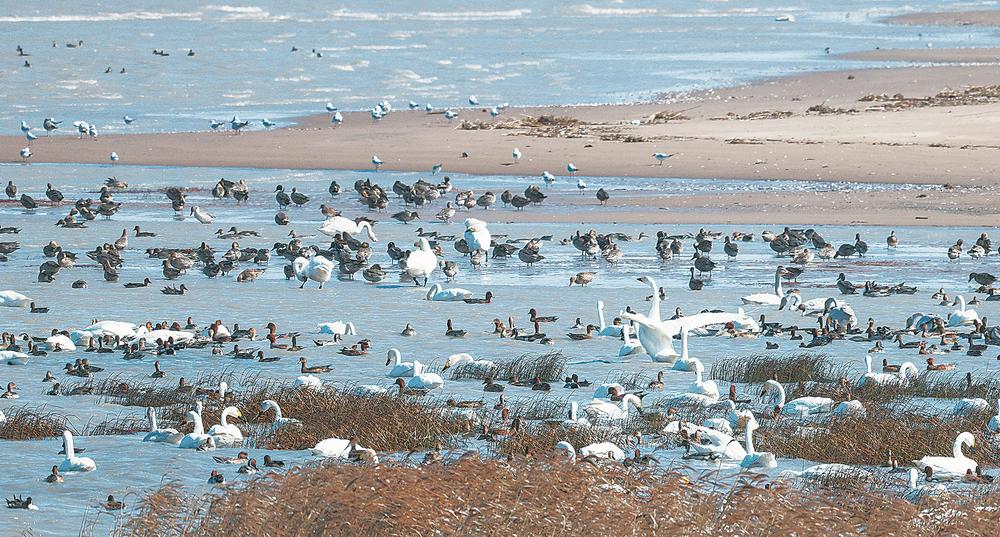 近日,閩江河口國家濕地公園上演壯麗的“鳥浪”景觀,成群的小天鵝正優雅振翅,與多種候鳥在海潮中共舞,為冬日的濕地增添無限生機。