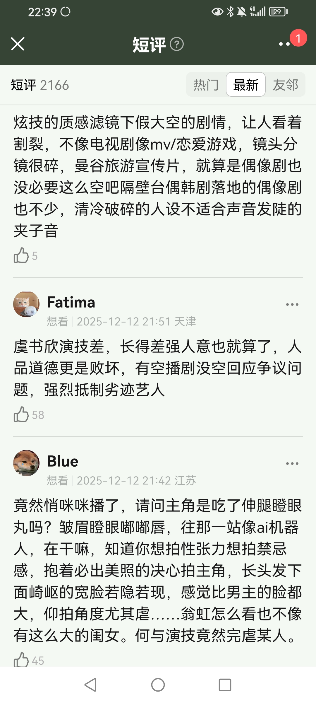 差評的觀眾則是覺得,虞書欣還是老樣子,老問題,說虞書欣用夾子音讓人覺得不適,總瞪眼嘟嘴。還說虞書欣的演技差。