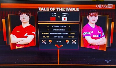 第一局,蒯曼開局轟出5-0,真的太輕松了,看起來準備十分充分,大藤沙月丟分非常快!接下來,大藤逐漸追到了3-5,蒯曼打出擦邊運氣球,穩定局面,大藤沙月隨后又失誤,分差再一次拉開了!接下來,蒯曼很快獲得局點,然后把握住機會,11-6先下一城!