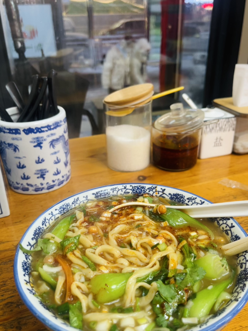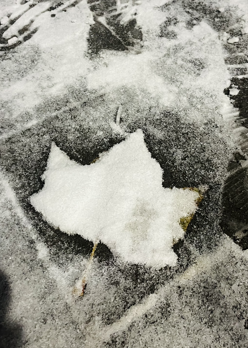 可時光短暫,不留我陷入自艾和哀嘆。雪花簌簌而下,我在積雪的路邊走走停停,圍觀路人情侶堆起的雪人,在路邊的汽車上留下兩個掌印,用手機(jī)記錄被雪凍住的落葉。對了,我還在小區(qū)門口一家熱騰騰的小店,吃光了一碗美味的家常手搟面。
