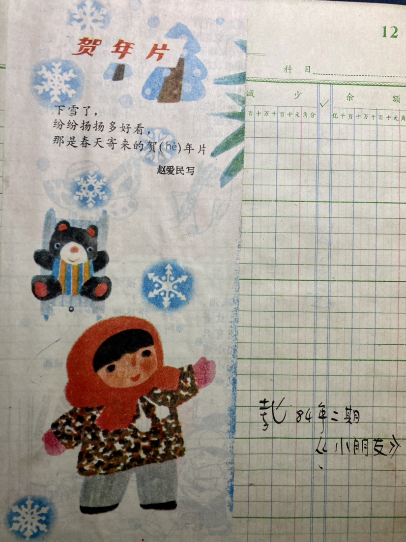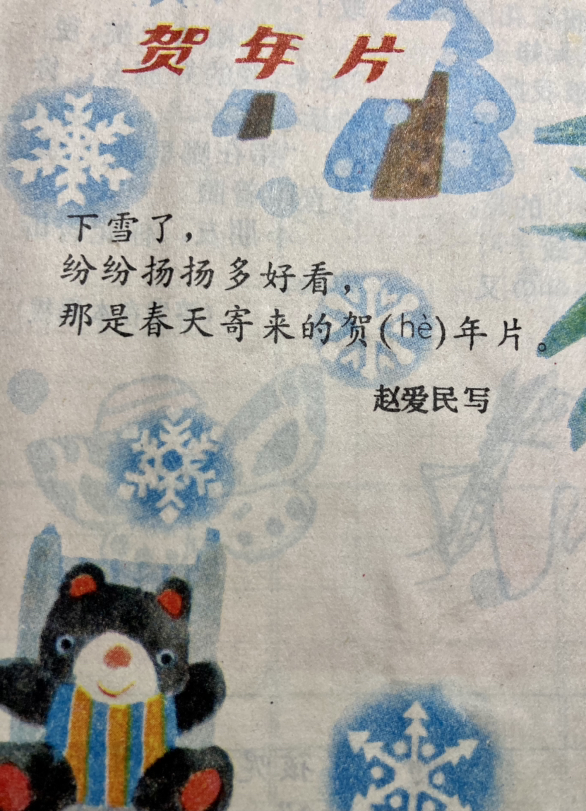 記得很多年前,我還為上海的少兒雜志《小朋友》寫過一首關(guān)于下雪的小詩呢!只有寥寥數(shù)語的幾行字,喏,是這樣寫的:賀年片……