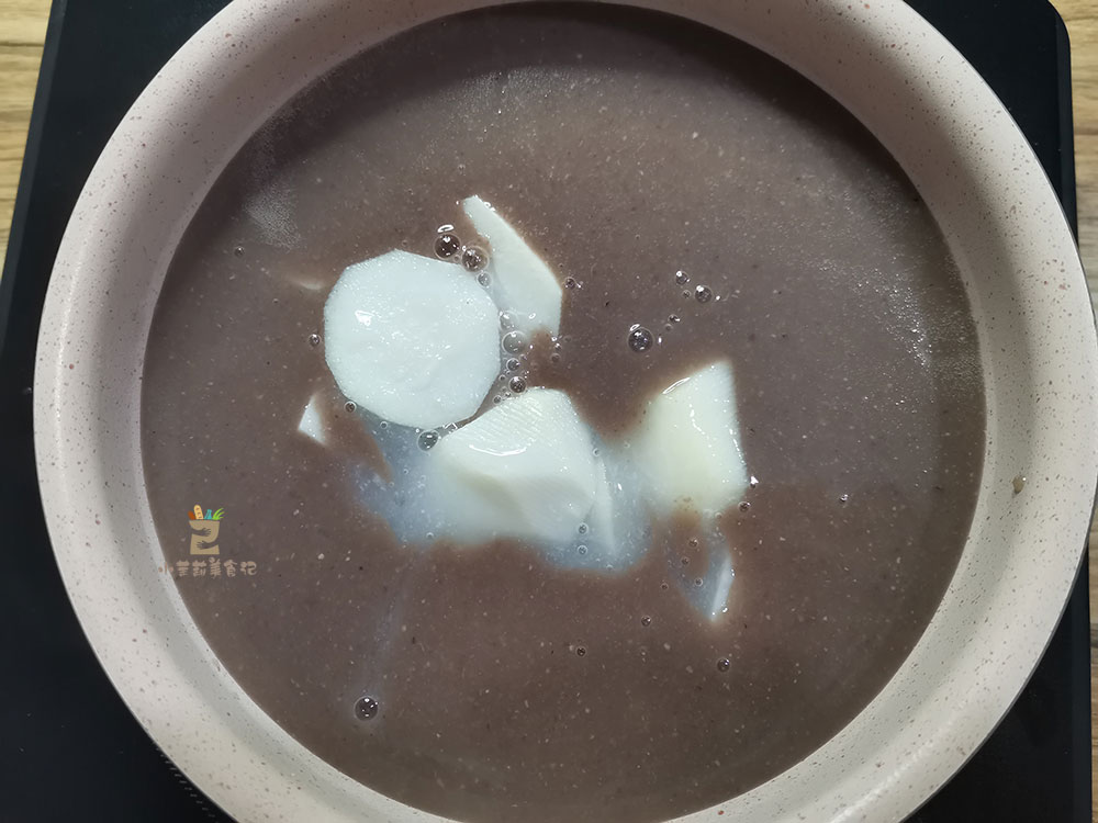 1、40克左右的紅小豆,先用清水洗兩遍,放到破壁機(jī)中,添上800毫升左右的飲用水,煮成紅豆沙。