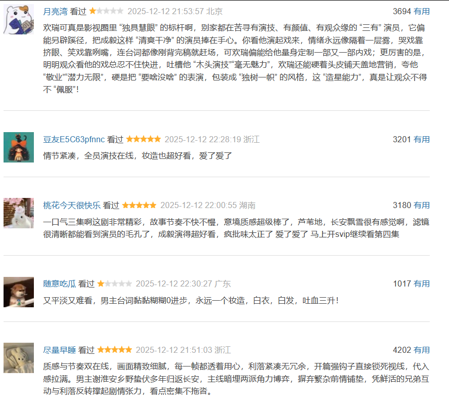 大部分觀眾,好評的都是說質感與節奏雙在線,畫面精致細膩透著用心,剪輯利落緊湊無冗余。開篇強鉤子直接鎖死視線,代入感拉滿。