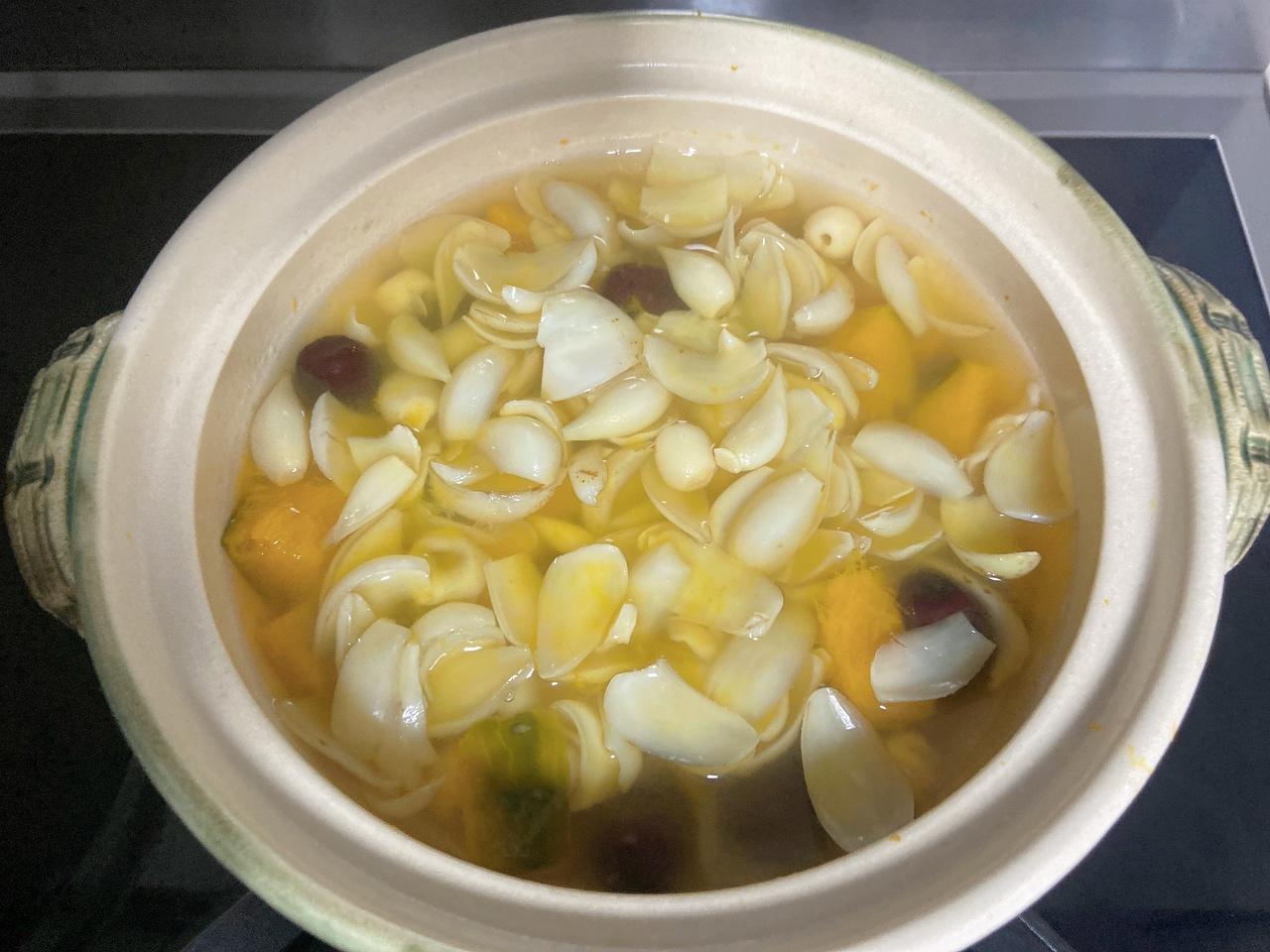 3、鍋里先放飲用水,百合之外的食材先放進(jìn)去,快速煮沸后,轉(zhuǎn)為小火燉二十分鐘,屆時(shí)將百合倒里邊,混合攪勻,再煮十分鐘,關(guān)火后燜一會(huì)兒,便可以享用,甘潤(rùn)爽口。
