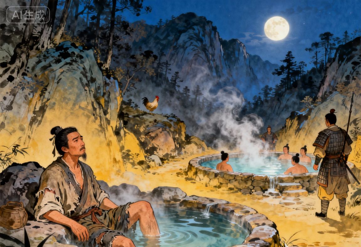 直到半夜雞叫劃破夜空,劉秀深知夜長夢多,當即起身整頓行裝,趁著夜色悄然離去,繼續踏上復興漢室的征程。次日清晨,王莽方才得知劉秀昨日竟與自己同駐一山、共沐一泉,悔恨不已,當即下令全軍追擊,卻早已沒了劉秀的蹤跡。