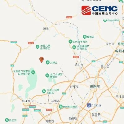 四川成都彭州市發生3.9級地震,震源深度13公里