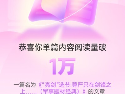 #分享頂端榮譽# 我在頂端單篇閱讀量破10000啦,恭謝關注