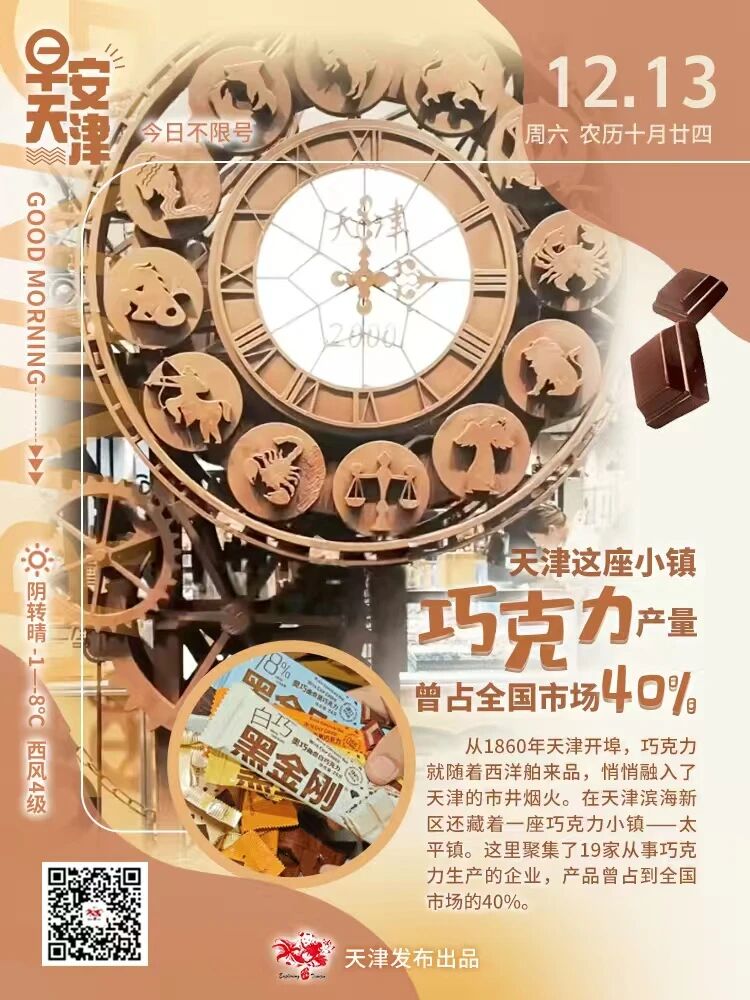 從1860年天津開埠,巧克力就隨著西洋舶來品,悄悄融入了天津的市井煙火。在天津濱海新區還藏著一座巧克力小鎮——太平鎮。這里聚集了19家從事巧克力生產的企業,產品曾占到全國市場的40%。