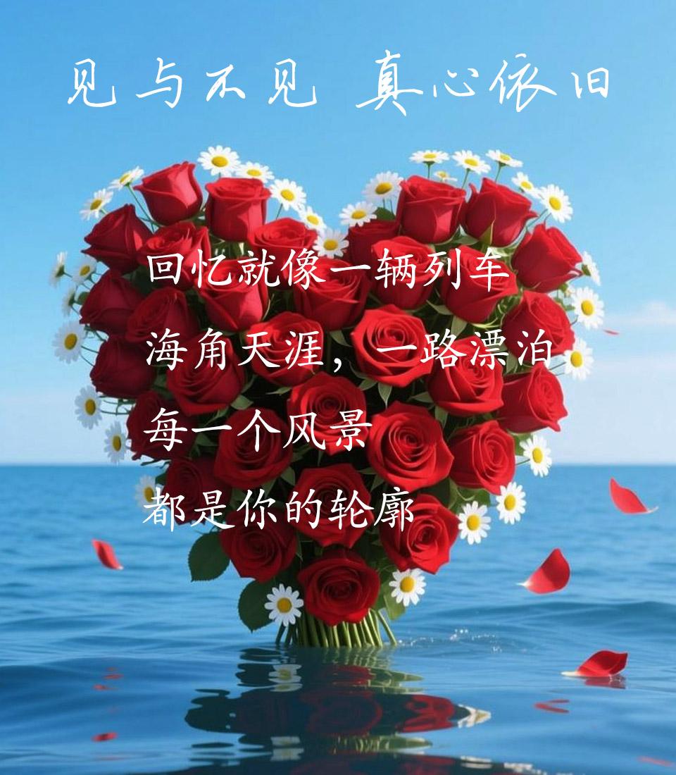 始終難忘初相識時,你微笑的模樣,思念如清風,能夠跨越千山萬水,見與不見,真心依舊,深情一直都在。
