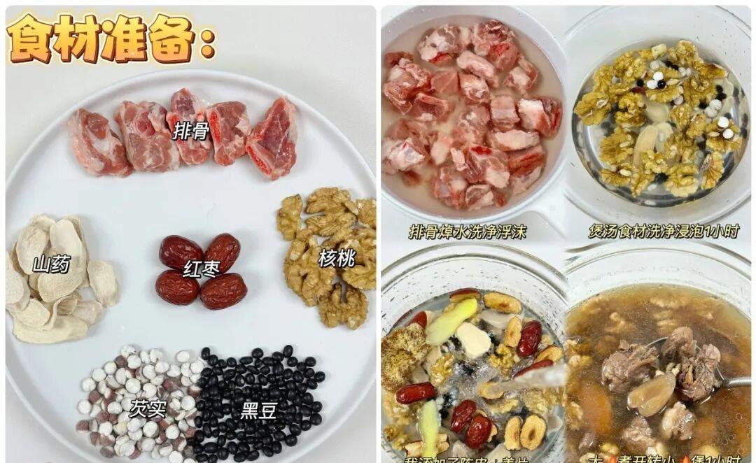 黑色對應腎臟,黑豆有滋養腎臟的功效,核桃被視為“溫陽佳品”,再搭配上能補氣養血的排骨,一同燉煮能夠溫補陽氣、強健腦力,特別適宜腎陽虛弱的人食用。