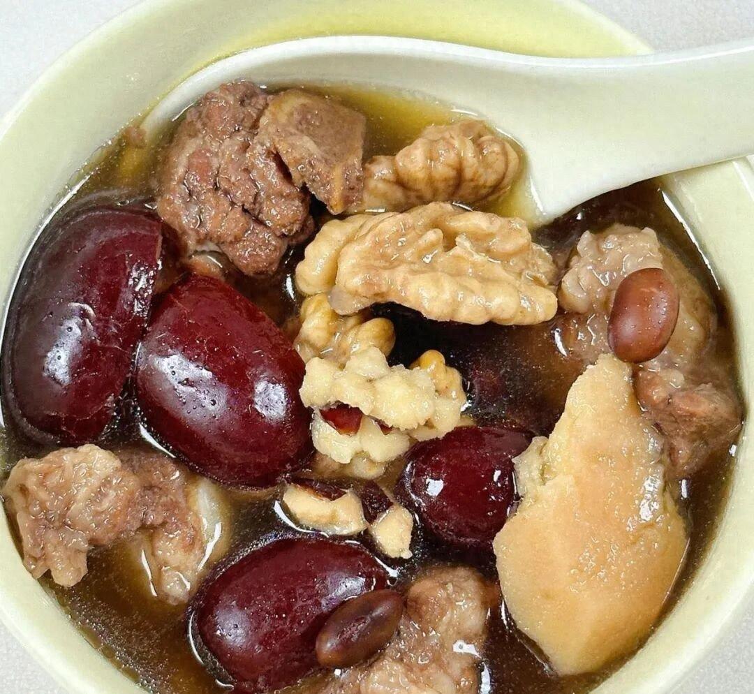 核桃里油分多,別放太多,不然湯會太膩。每周吃個一兩次就行,長期吃對改善身體小毛病有幫助。
