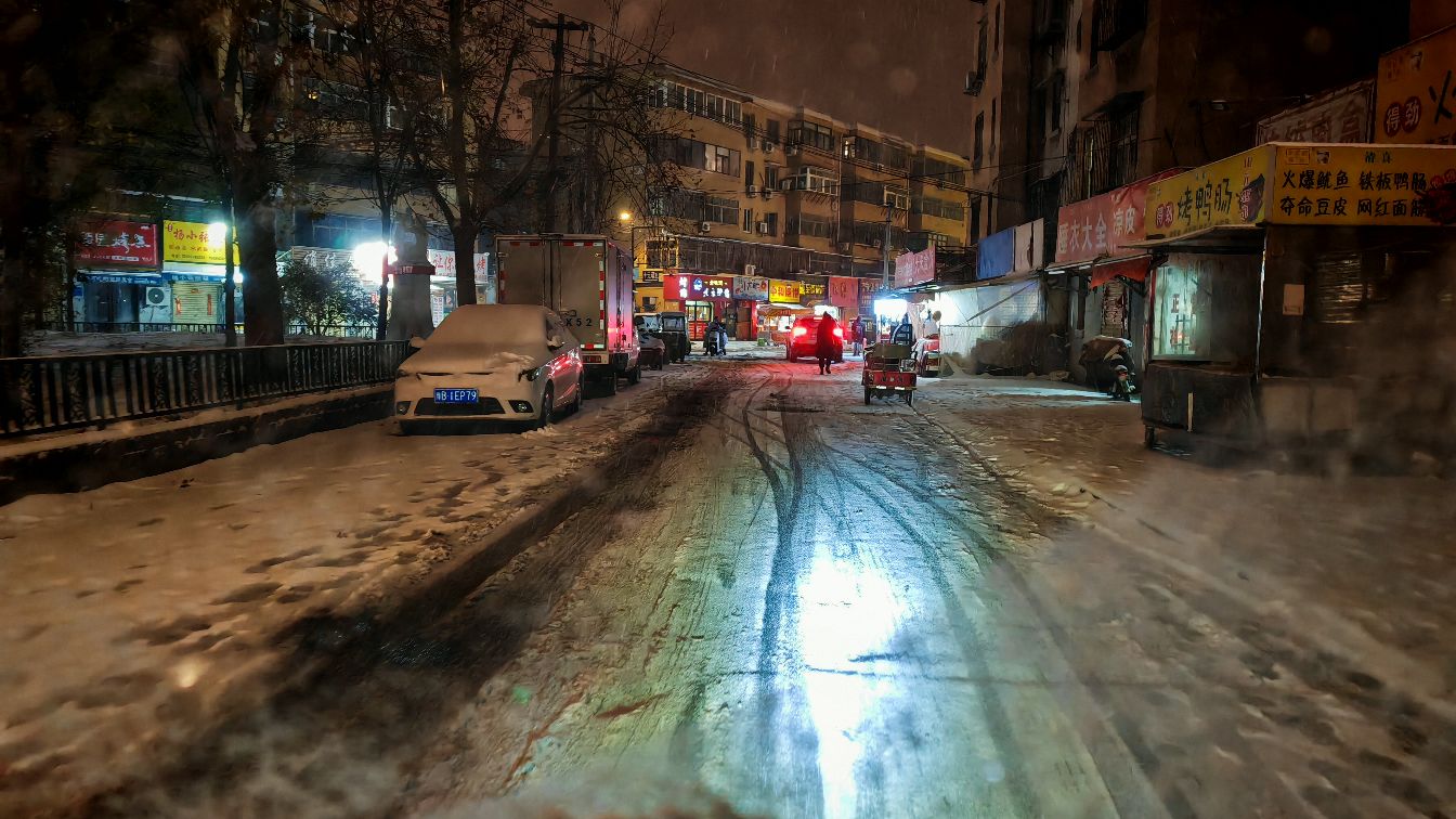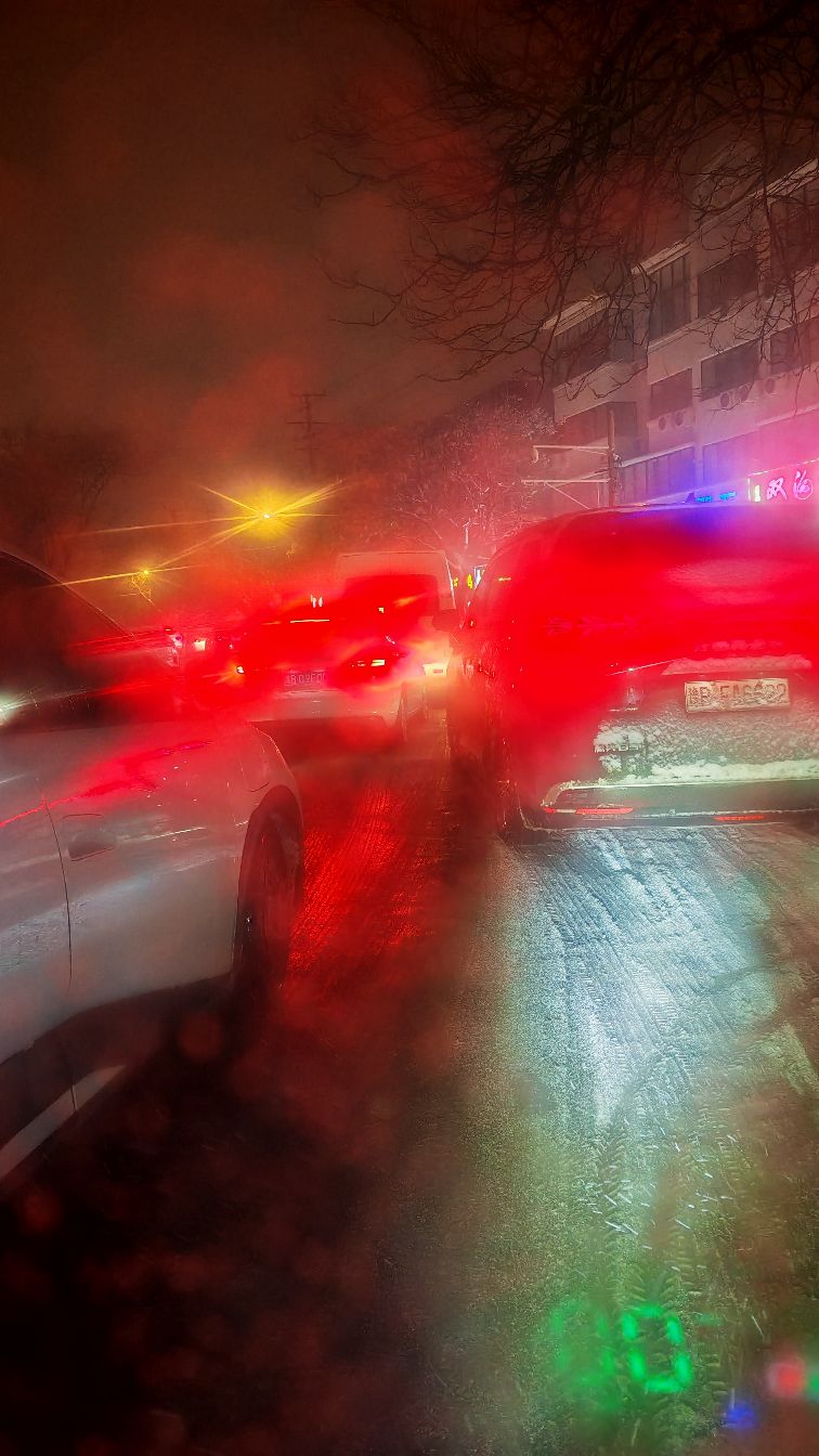 #風雪守護者# 2025.12.12日 二七區賀江路的環衛工人,在風雪交加的下午,在辛勤的為周邊的老百姓服務,在積雪的馬路上潵溶雪劑。